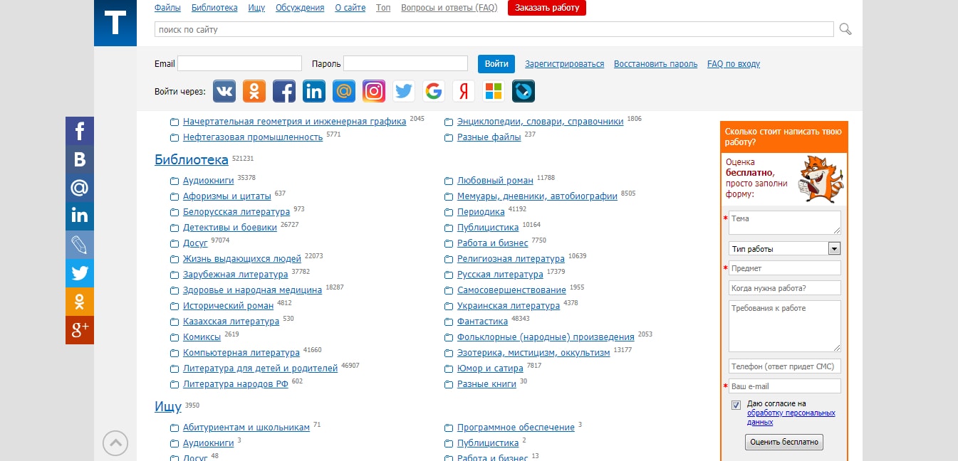 Contrairement à de nombreux sites, cette ressource contient non seulement des œuvres de fiction, mais également des livres et des magazines plutôt rares. Presque tous sont librement disponibles. Mais le téléchargement nécessite une inscription obligatoire. Immédiatement, vous recevrez 100 points pouvant être dépensés pour les livres présentés sur le site. Leur coût est différent, tout dépend de la popularité du travail.