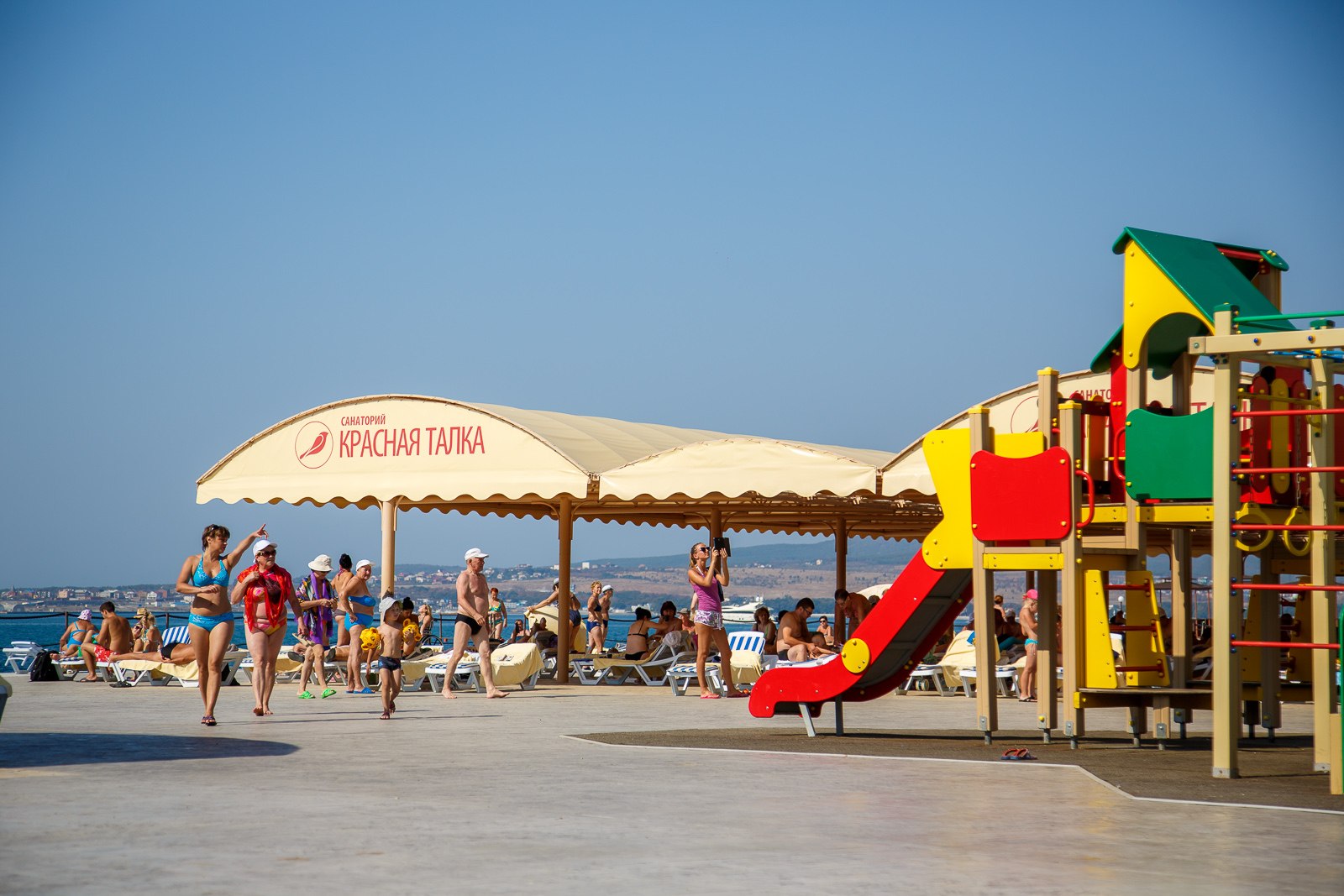 - "Red talka" est la plage du sanatorium du même nom, qui s’appelle la meilleure de Gelendzhik. Il est équipé d'auvents, de transats et de douches. Vous trouverez une aire de jeux pour enfants, des terrains de volley-ball, de football et de basket-ball. Il y a quelques années, sur le territoire de la plage, une zone séparée «bungalow sur la plage» a été organisée avec un service et des repas individuels. Ceux qui résident dans le sanatorium peuvent visiter la plage gratuitement. Pour le reste, le prix d'entrée est de 400 roubles par adulte et de 300 roubles par enfant. Louer un bungalow sur la plage - 2 000 roubles.