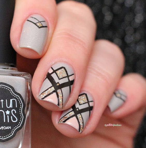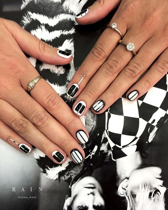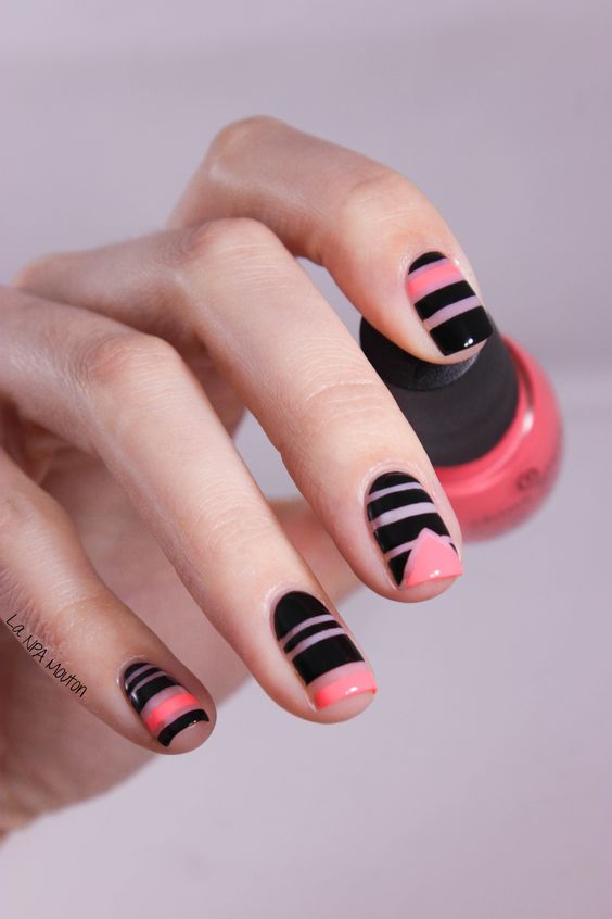 Bande à la mode ou manucure géométrique spectaculaire avec des lignes.