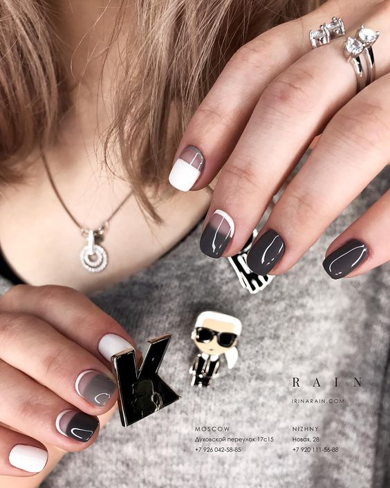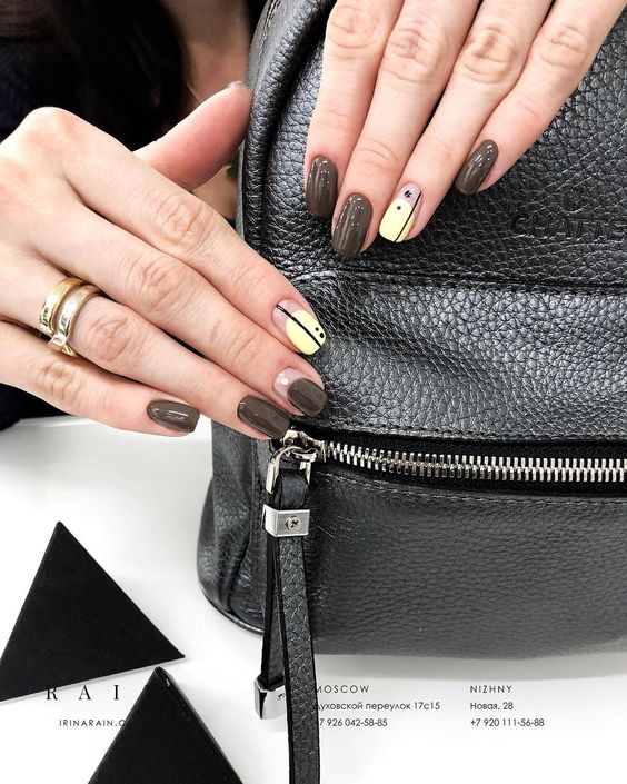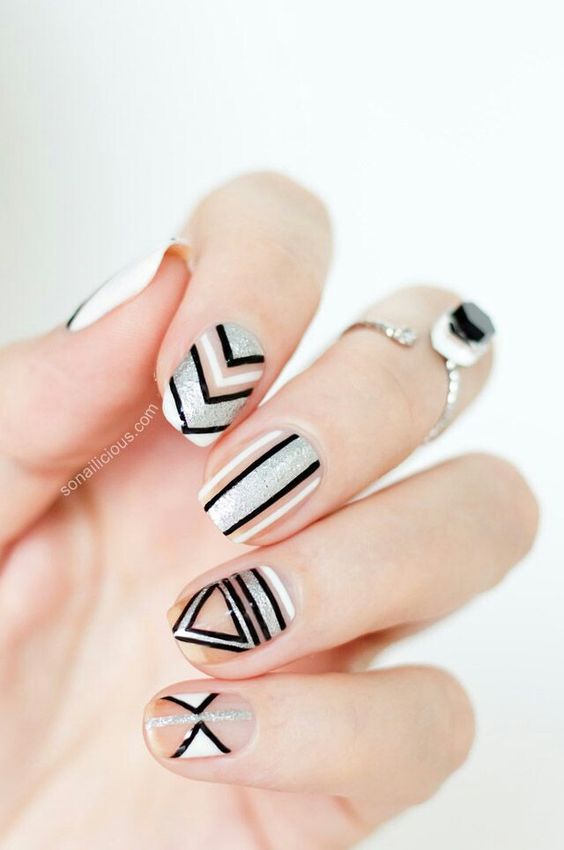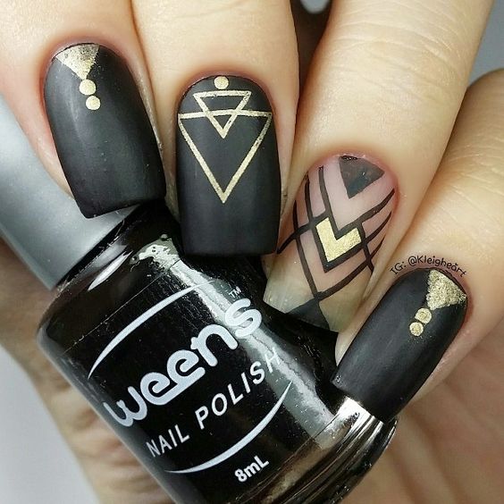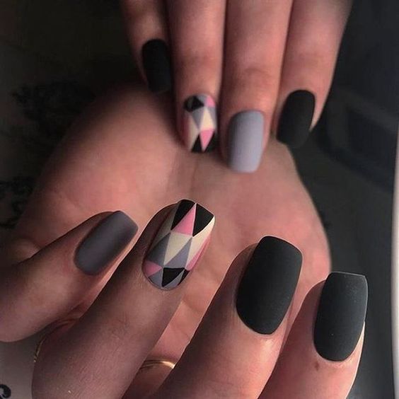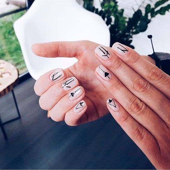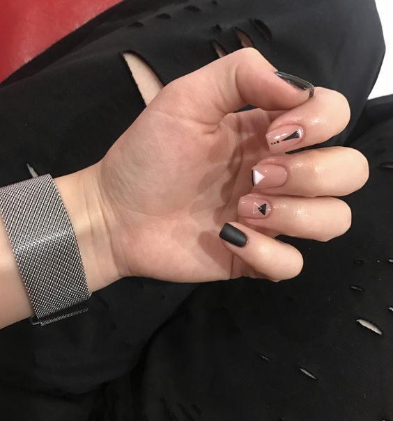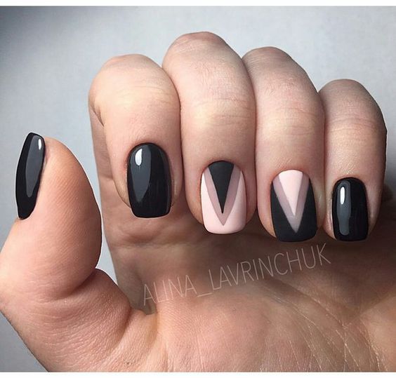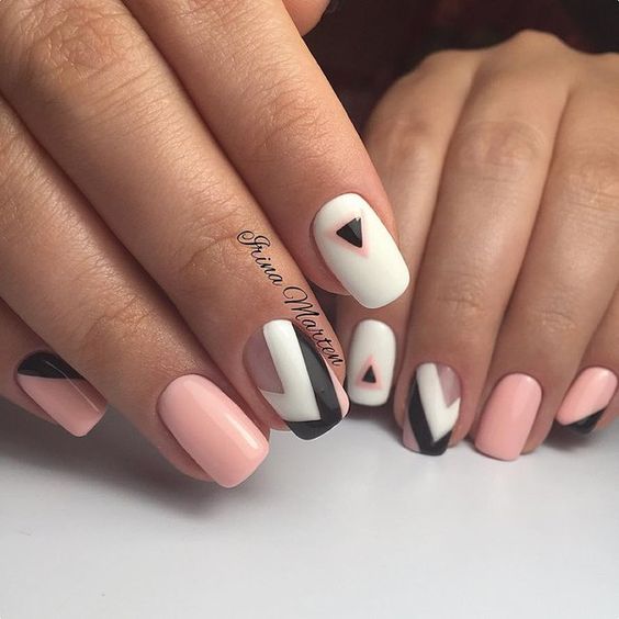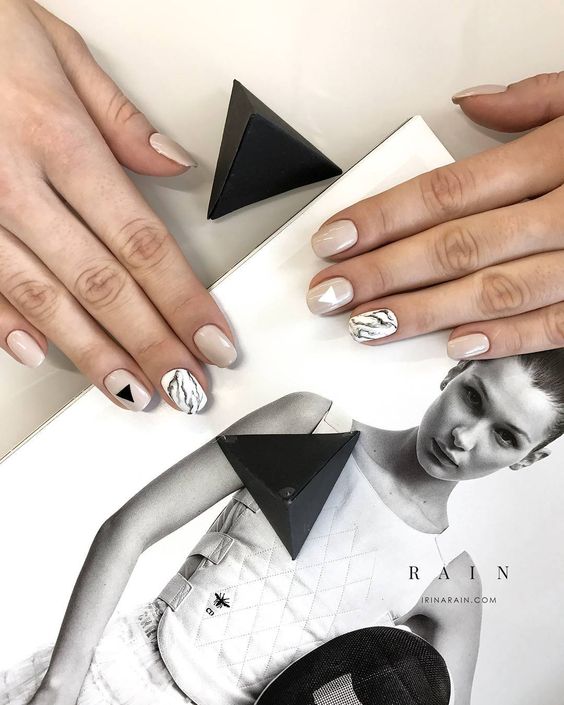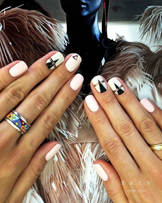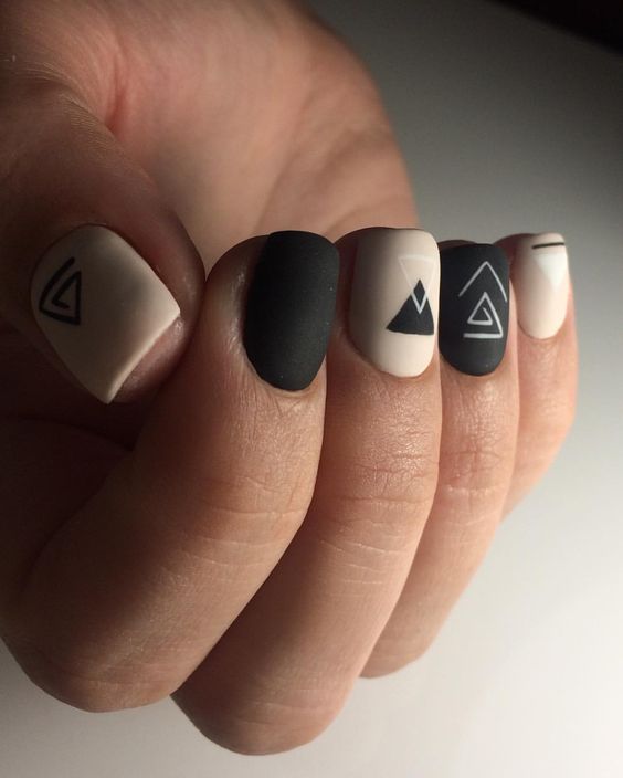 La conception d’art géométrique est très complexe, mais si vous suivez les descriptions et les astuces, vous pourrez facilement la maîtriser et apprécier le bel art géométrique. Dans les manucures géométriques, les couleurs ne sont pas communément acceptées. Le choix de la teinte de la manucure géométrique dépend directement des préférences des femmes, mais les figures elles-mêmes sont souvent exécutées en noir. Il a l'air élégant et spectaculaire. Un triangle en manucure géométrique est un élément commun. L'image du triangle n'est pas compliquée, mais pas dans le cas de combinaisons du triangle avec des lignes qui se croisent et diverses autres formes nécessitant certaines compétences du maître. À l’heure actuelle, vous verrez les meilleures options pour une manucure géométrique attrayante avec des éléments triangulaires dans l’examen de la photo.