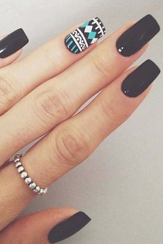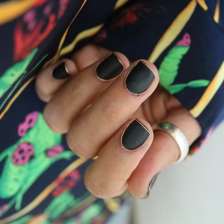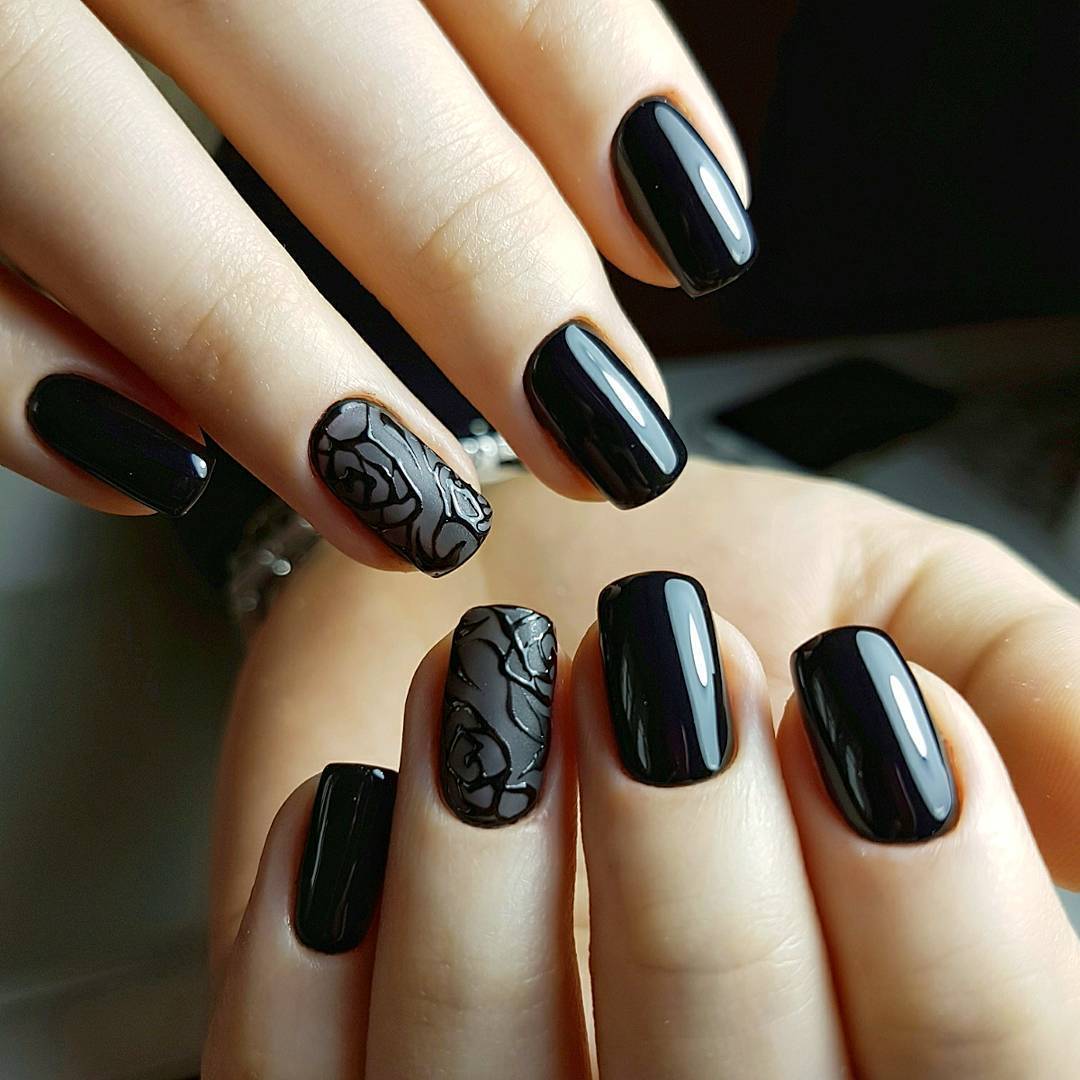Un avantage significatif du noir profond est la possibilité de combiner facilement avec une grande variété de couleurs. Cette dignité de couleur impénétrable a déjà été appréciée par de nombreux experts dans le domaine du nail art. Parfaitement nuances de la couleur sombre en appliquant un vernis d'une nuance différente sur un ongle.
