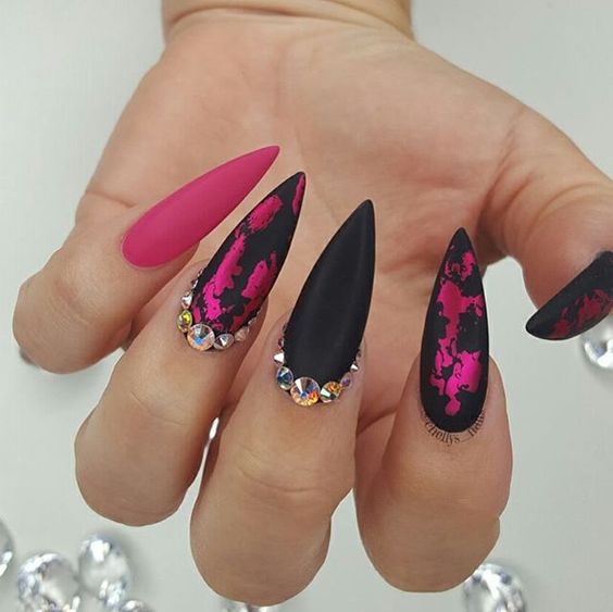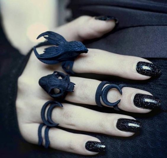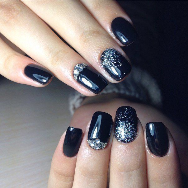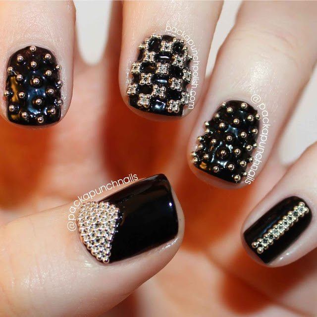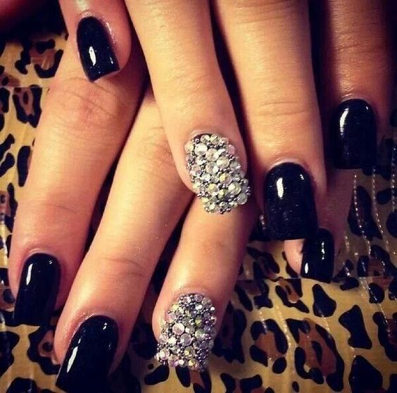Bijoux: strass et pierres scintillantes dans un magnifique nail art noir