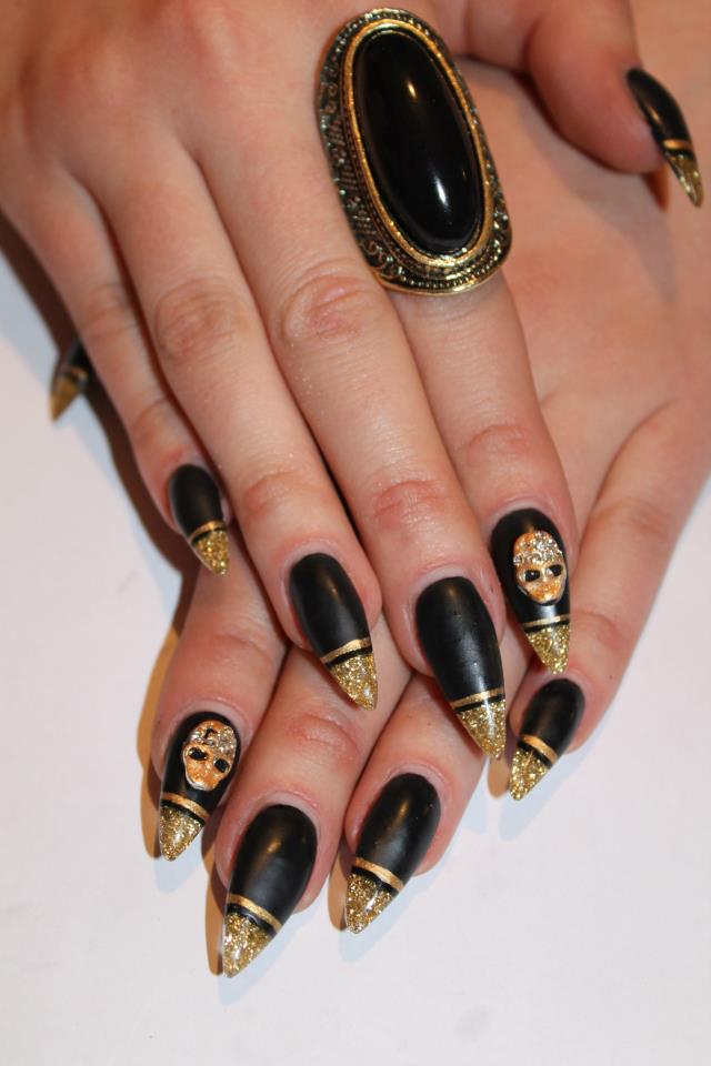 Fabuleux paillettes d'or et d'argent de manucure noire