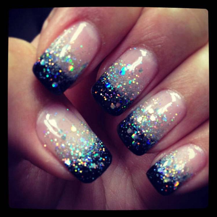 Très souvent, les actrices hollywoodiennes des films vedettes ou d’autres représentations publiques peuvent assister à une brillante manucure sous la forme d’un français appelé millénaire. Le faire vous-même est très facile. Cela nécessitera seulement des étincelles et du vernis noir. Par la manucure noire avec des étincelles, on peut facilement déterminer certaines caractéristiques personnelles du propriétaire, son humeur et son attitude vis-à-vis de tout.