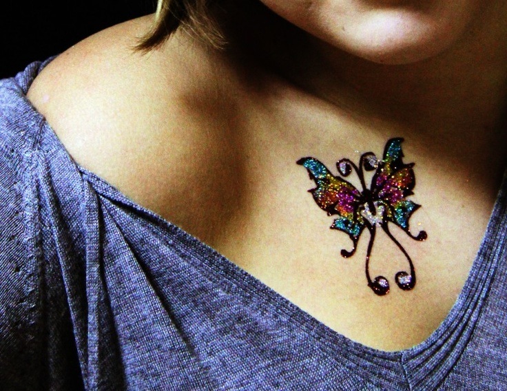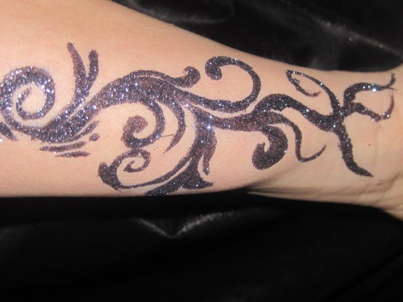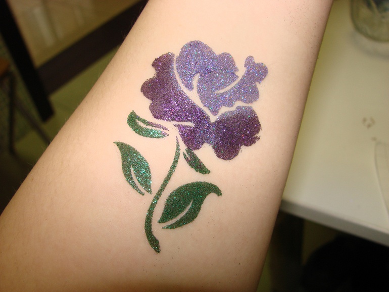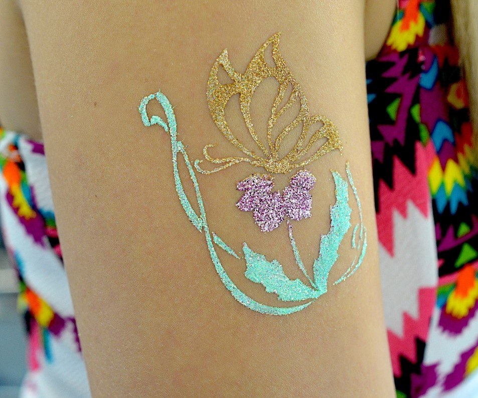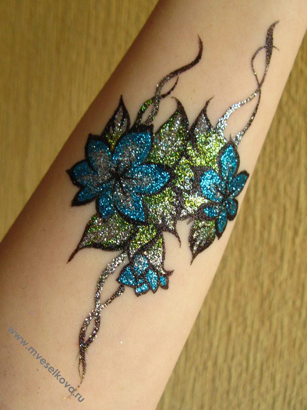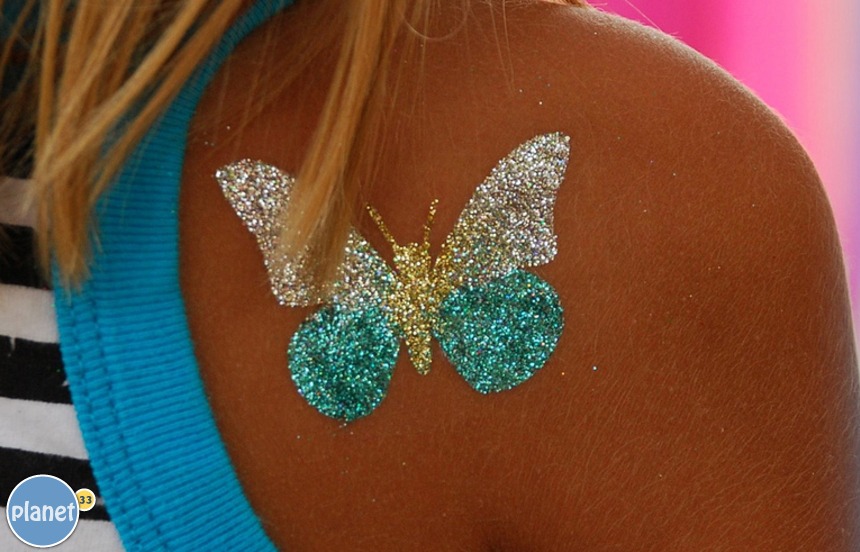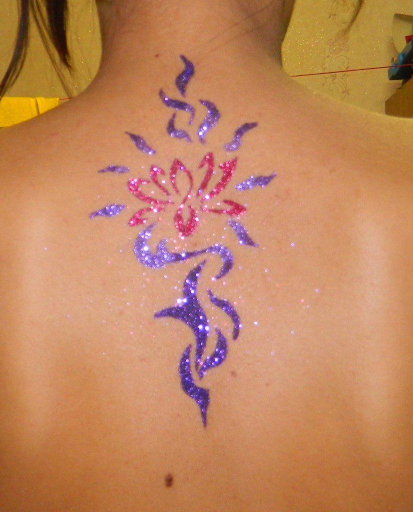 Un tatouage temporaire, réalisé à l'aide de paillettes attrayantes, est caractéristique pour attirer non seulement les filles, mais également les enfants de tout âge. Le motif est superbe et très visible même la nuit. Peu importe où le client souhaite appliquer le dessin, il choisit le plus souvent des parties du corps telles que les bras, les jambes, le dos ou la poitrine. Les enfants aiment surtout dessiner sur leurs visages des papillons ou des motifs floraux. Le tatouage de paillettes est considéré comme une solution universelle qui n’a aucun effet secondaire ni effet négatif sur la peau. Cette variété de dessins portables n'a pas non plus de restrictions de couleur ni de taille, tout dépend des désirs et des goûts du propriétaire. Une qualité tout aussi importante et positive d’un tel tatouage est l’utilisation d’une colle spéciale, totalement inoffensive pour la santé humaine, qui ne provoque ni irritation ni allergie.