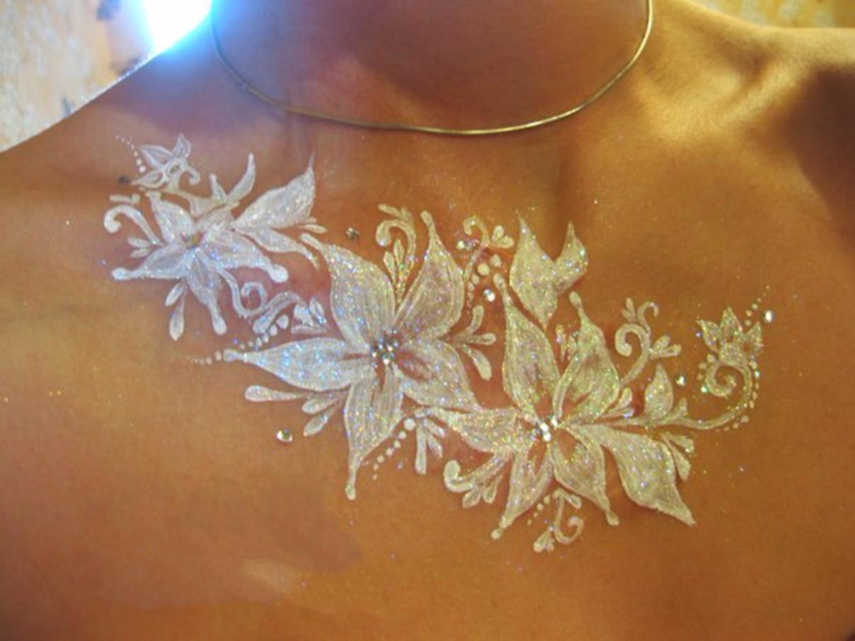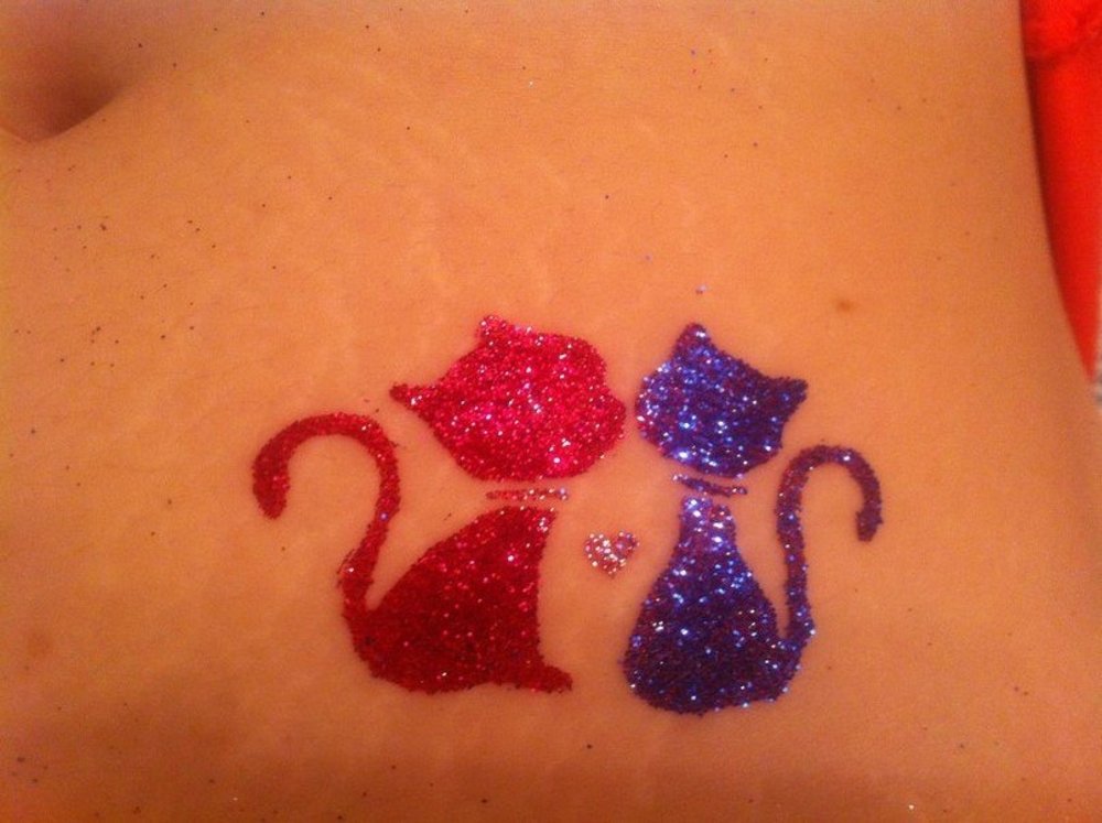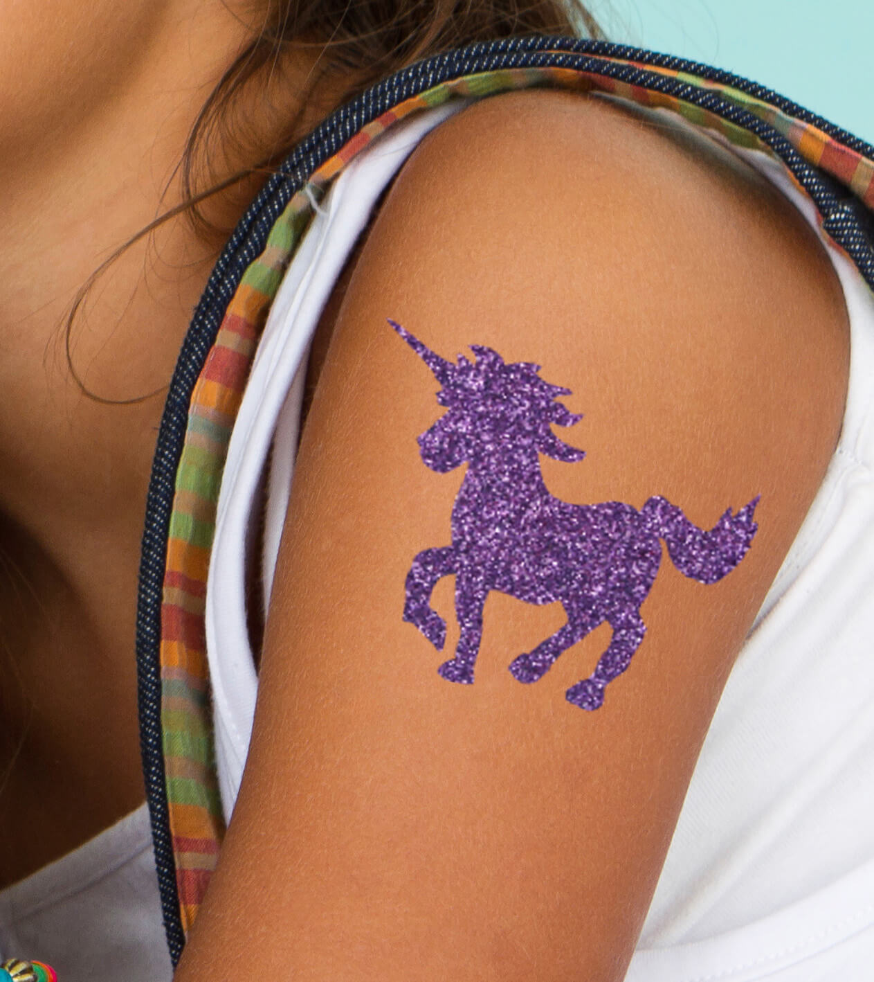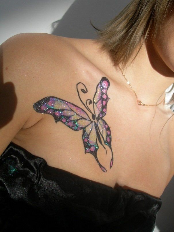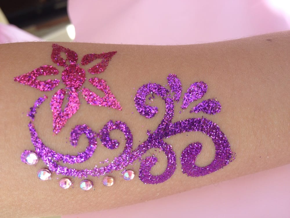 Un tatouage temporaire, réalisé à l'aide de paillettes attrayantes, est caractéristique pour attirer non seulement les filles, mais également les enfants de tout âge. Le motif est superbe et très visible même la nuit. Peu importe où le client souhaite appliquer le dessin, il choisit le plus souvent des parties du corps telles que les bras, les jambes, le dos ou la poitrine. Les enfants aiment surtout dessiner sur leurs visages des papillons ou des motifs floraux. Le tatouage de paillettes est considéré comme une solution universelle qui n’a aucun effet secondaire ni effet négatif sur la peau. Cette variété de dessins portables n'a pas non plus de restrictions de couleur ni de taille, tout dépend des désirs et des goûts du propriétaire. Une qualité tout aussi importante et positive d’un tel tatouage est l’utilisation d’une colle spéciale, totalement inoffensive pour la santé humaine, qui ne provoque ni irritation ni allergie.