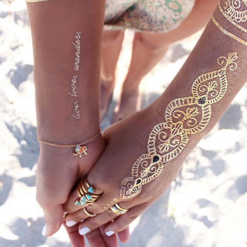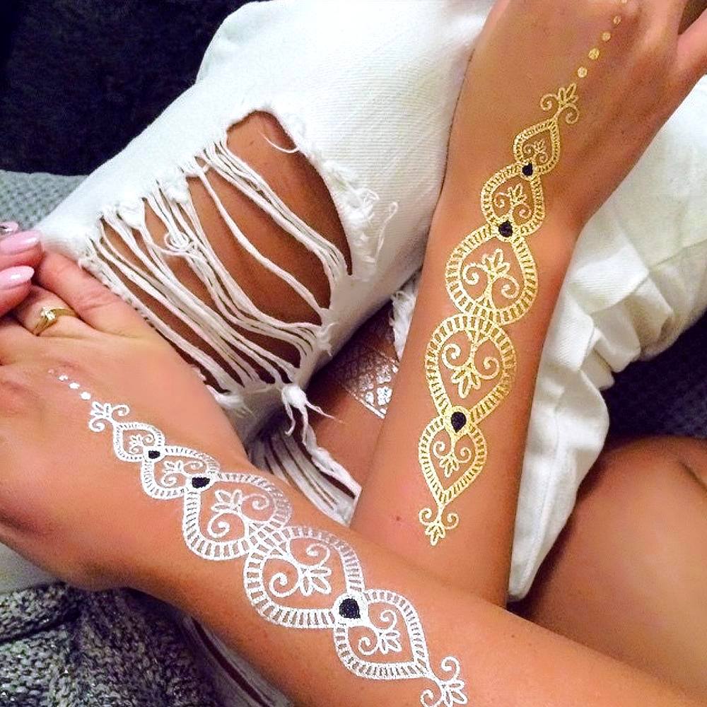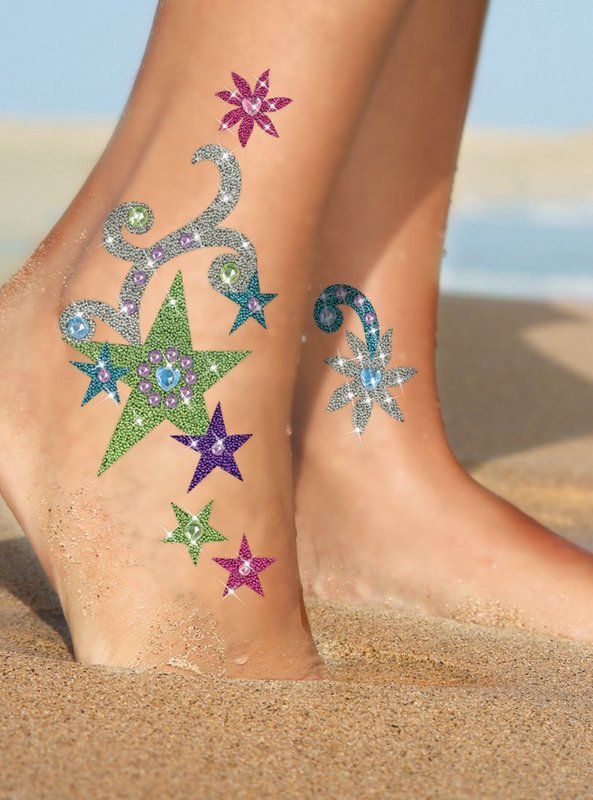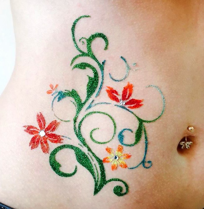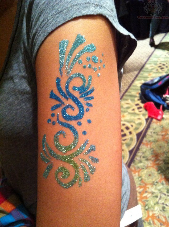 Les tatouages scintillants sont un type de dessin très populaire sur le corps. Sa mise en œuvre est dans l'application d'étincelles. Les particules étincelantes sont retenues sur le corps avec une colle hypoallergénique. Les tatouages scintillants, lumineux et colorés avec des étincelles sont typiques pour les filles. De cette façon, vous pouvez décorer votre corps et attirer une attention considérable. Il est à noter que ce type particulier de conceptions de sous-vêtements a la plus grande gamme de couleurs. Les tatouages scintillants peuvent parfaitement compléter un look élégant et original, le rendant lumineux. Un autre avantage principal de la variété de tatouages temporaires est que si la photo est fatiguée, vous pouvez facilement vous en débarrasser.