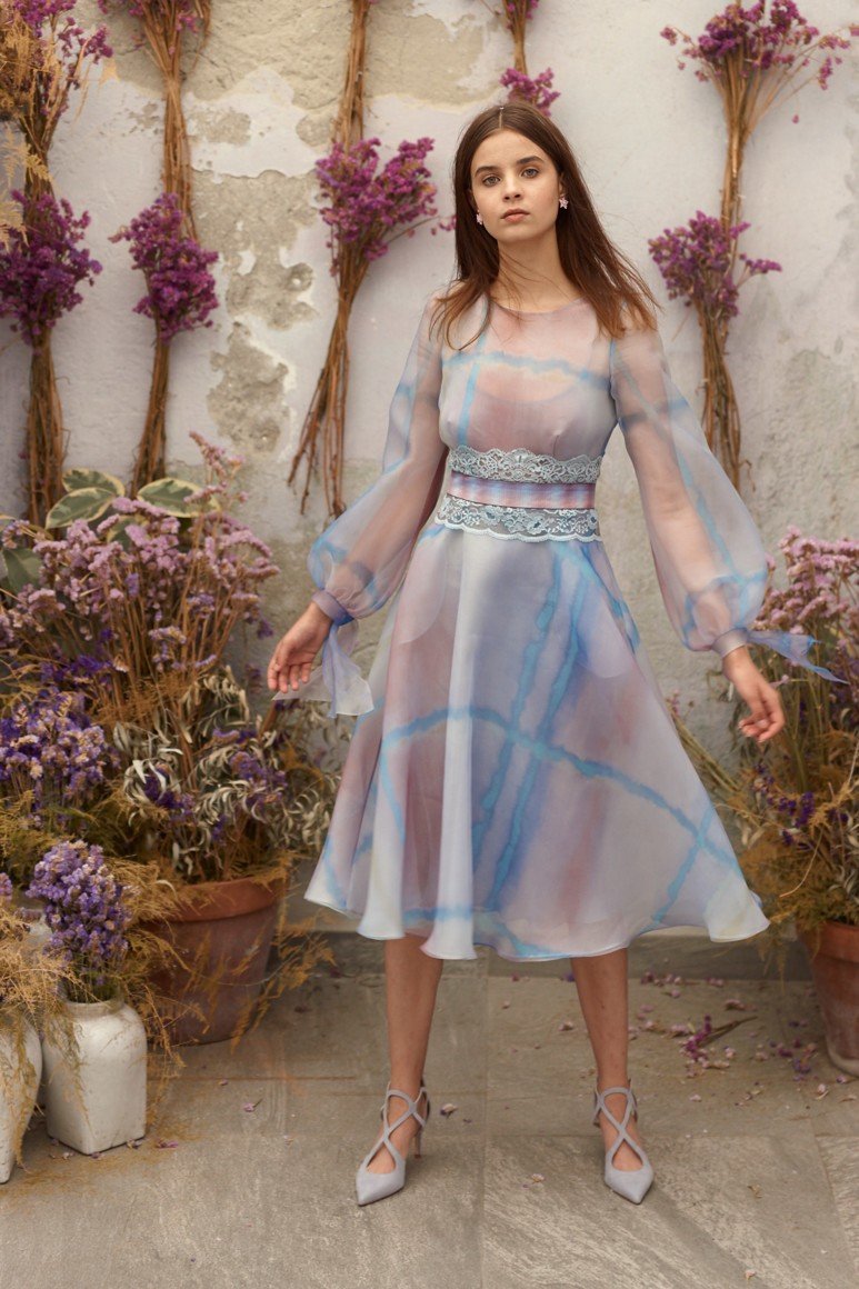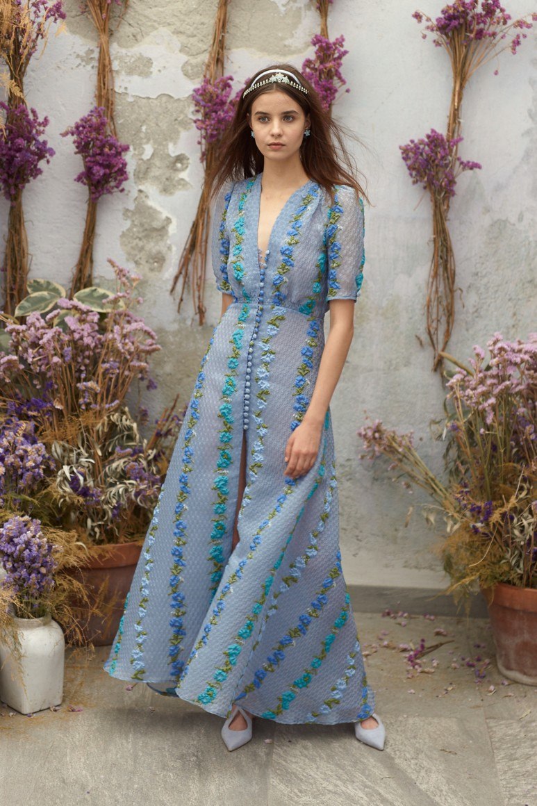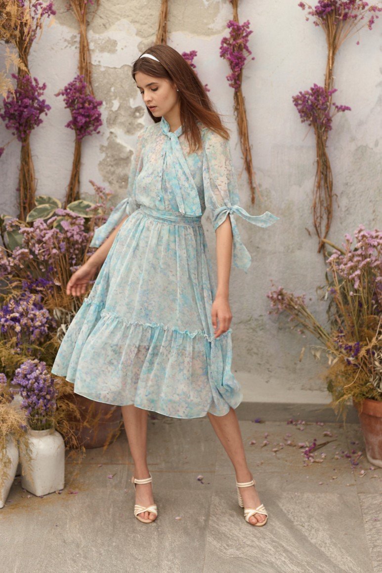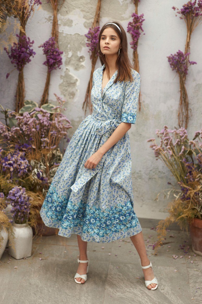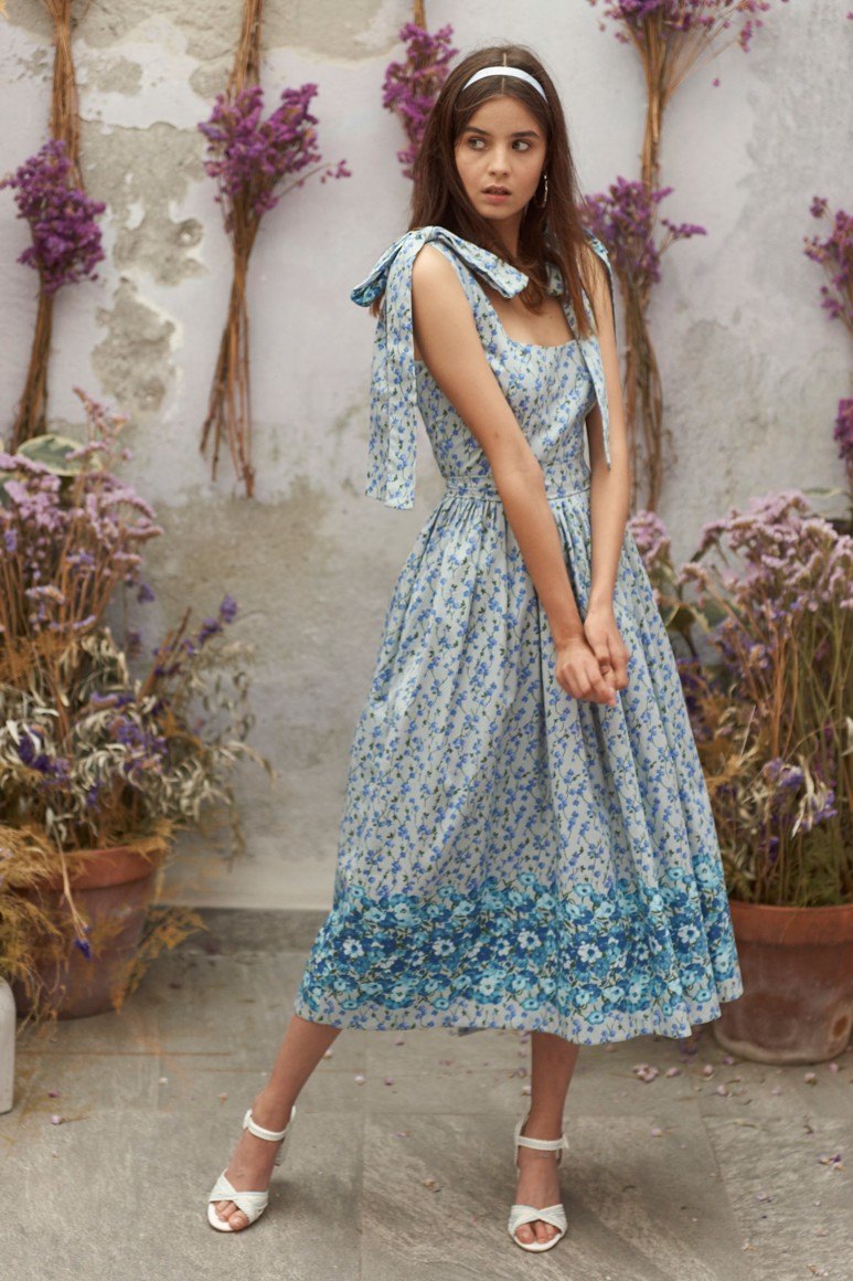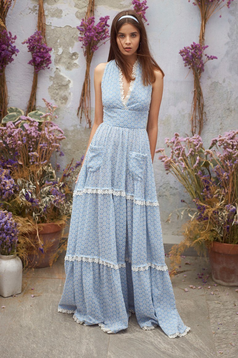 Robes romantiques en bleu avec des fleurs