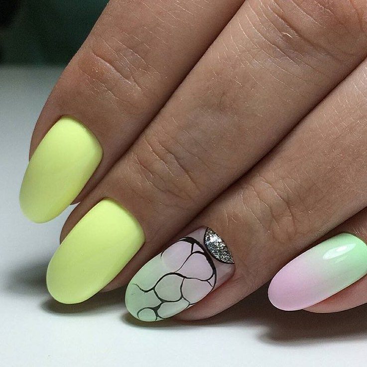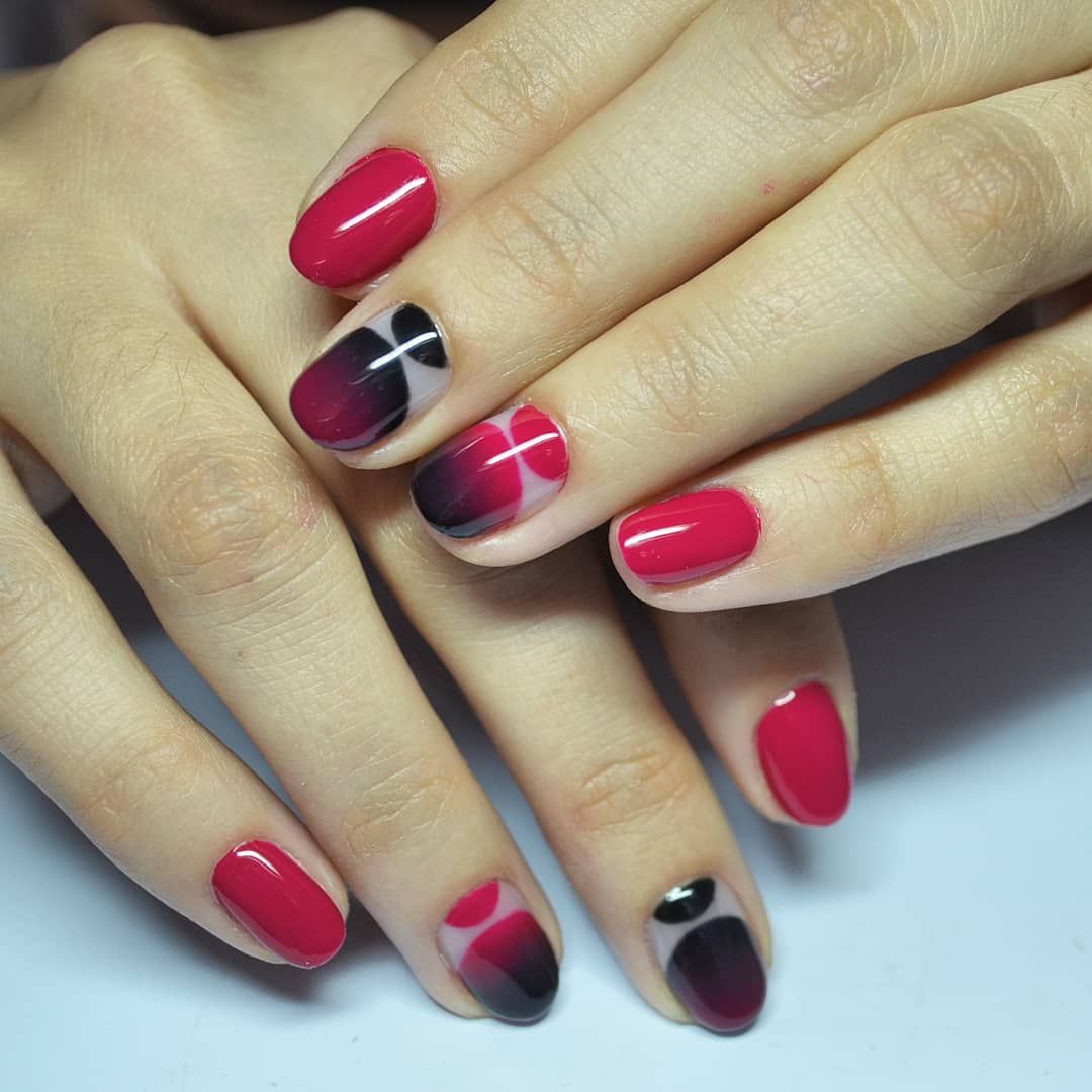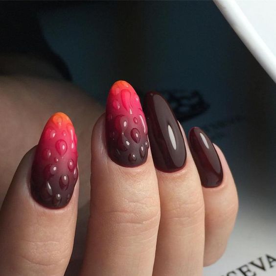 Le gradient chaotique est devenu très populaire récemment. Cela vous permet de donner libre cours à votre imagination et de réaliser vos idées. Autrement dit, vous pouvez décider de manière indépendante de la partie du souci que le dégradé sera exécuté. Dans ce cas, vous serez certainement sûr que le design est unique. Et, bien sûr, la manucure en dégradé est parfaite pour la compléter avec un motif intéressant ou même inhabituel.