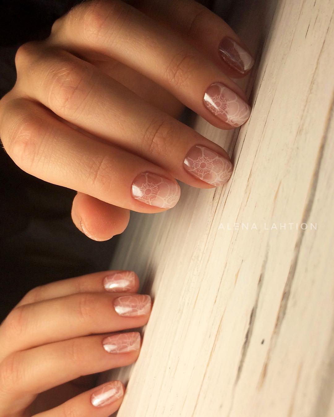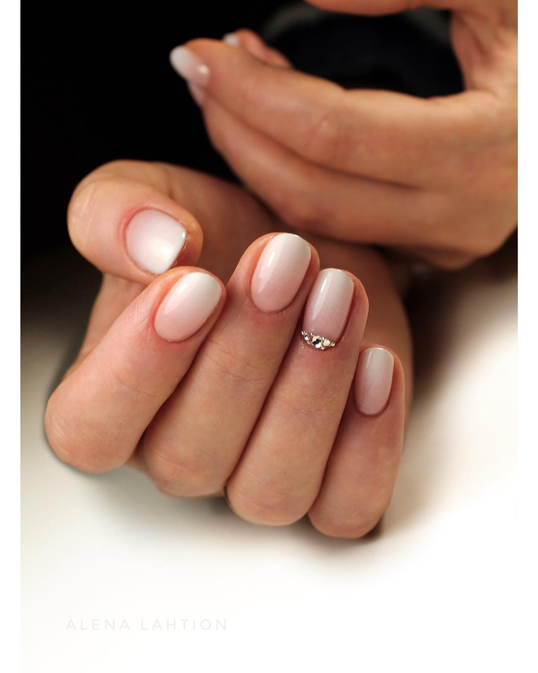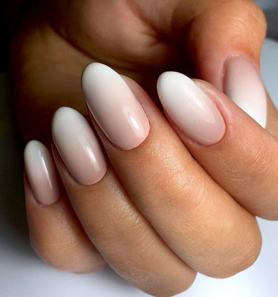 À la maison, le moyen le plus simple de créer un dégradé consiste à utiliser une simple éponge. Pour ce faire, vous devez couvrir les ongles avec une nuance claire de base. Le plus souvent, il est blanc, beige ou rose pâle.