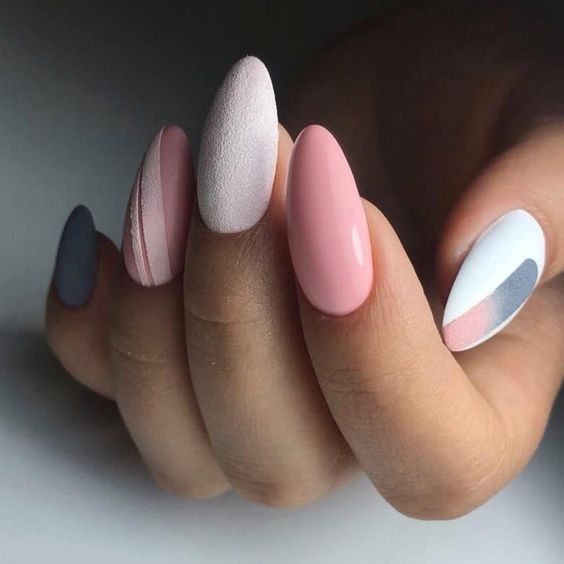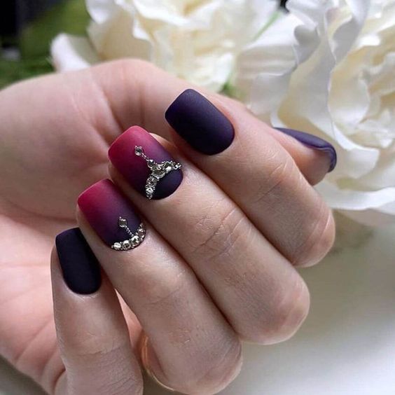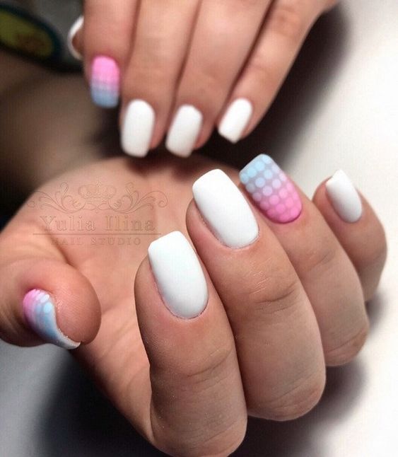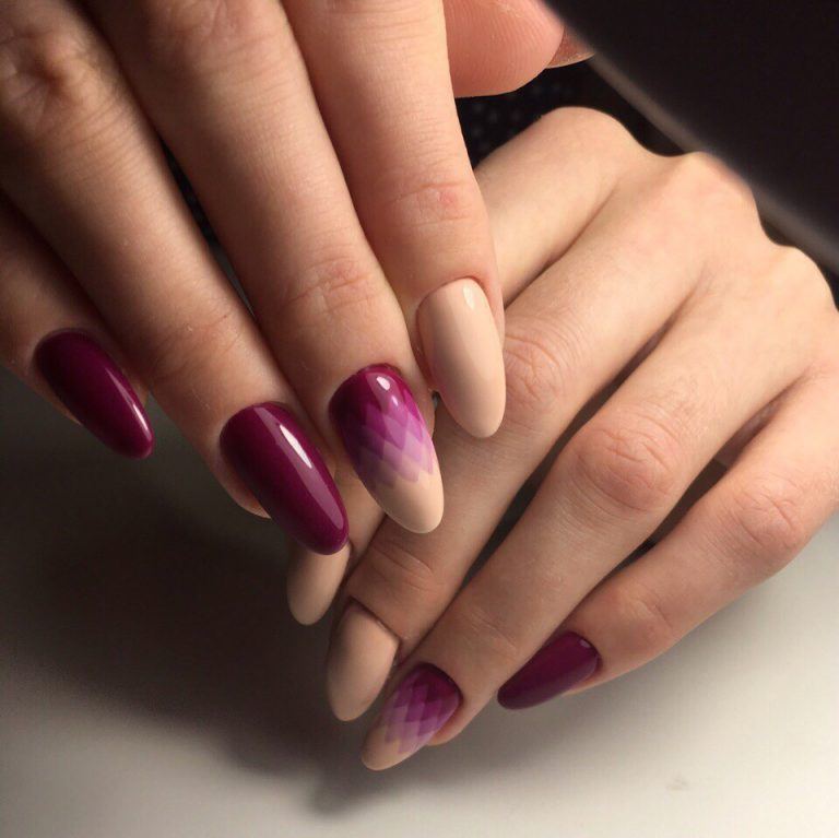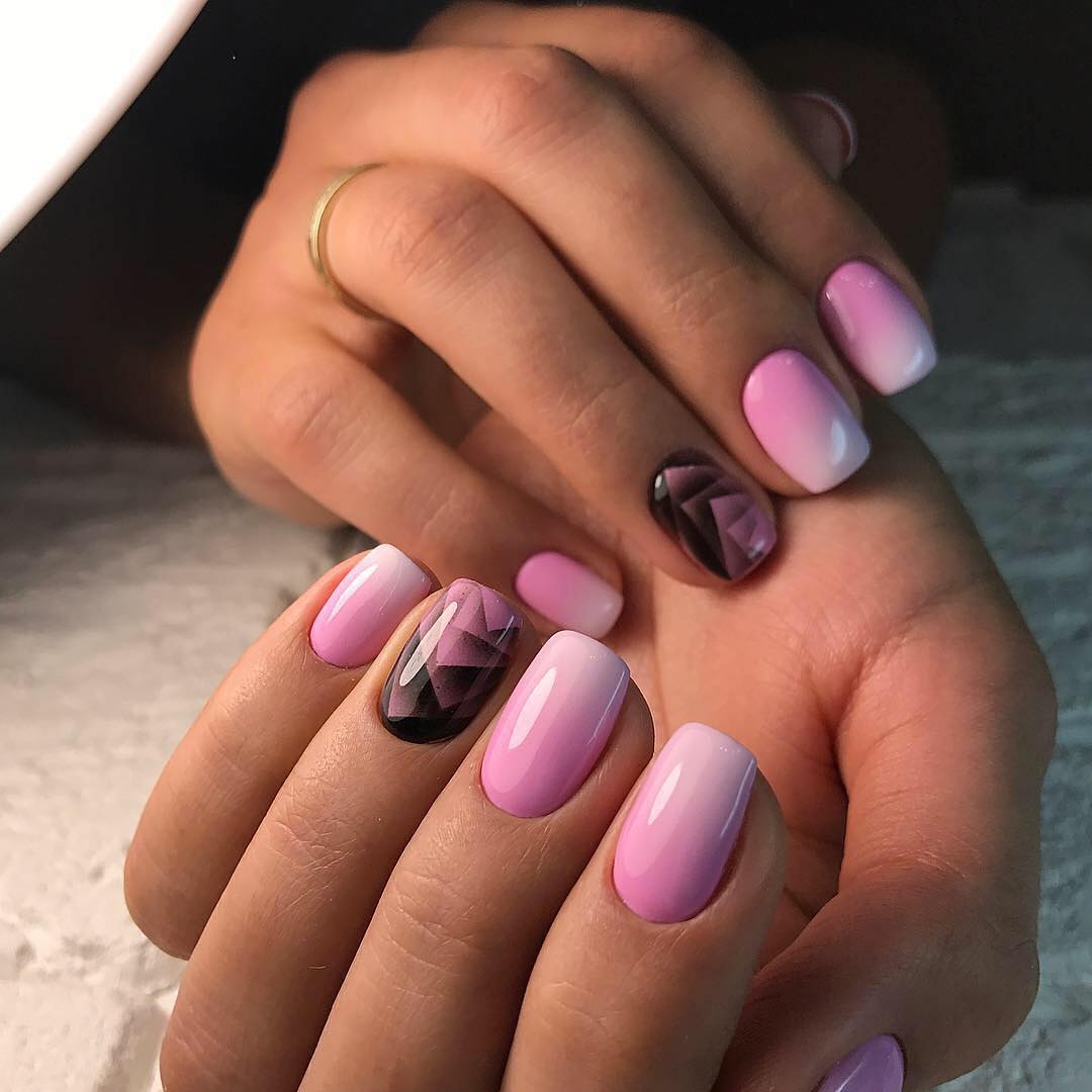 La conception géométrique est combinée avec un dégradé pas moins souvent. Le fait est qu’il est universel et qu’il peut facilement compléter et décorer presque toutes les manucures.