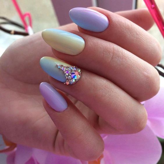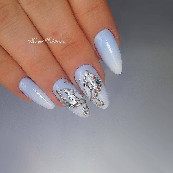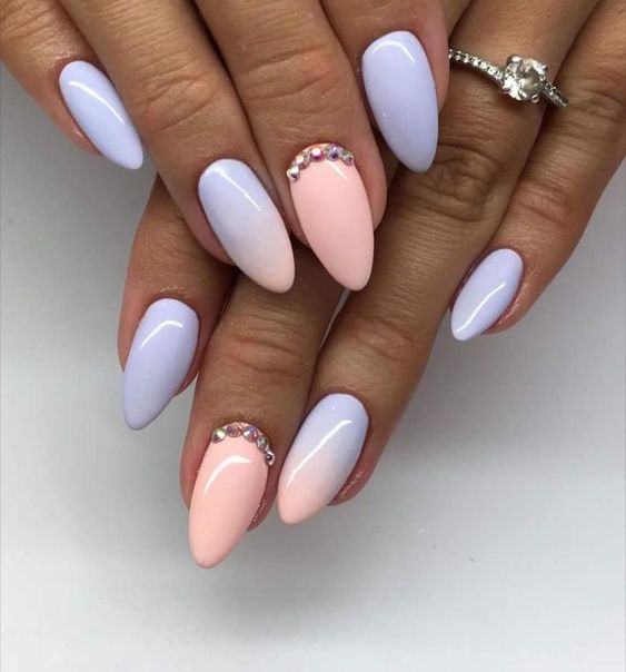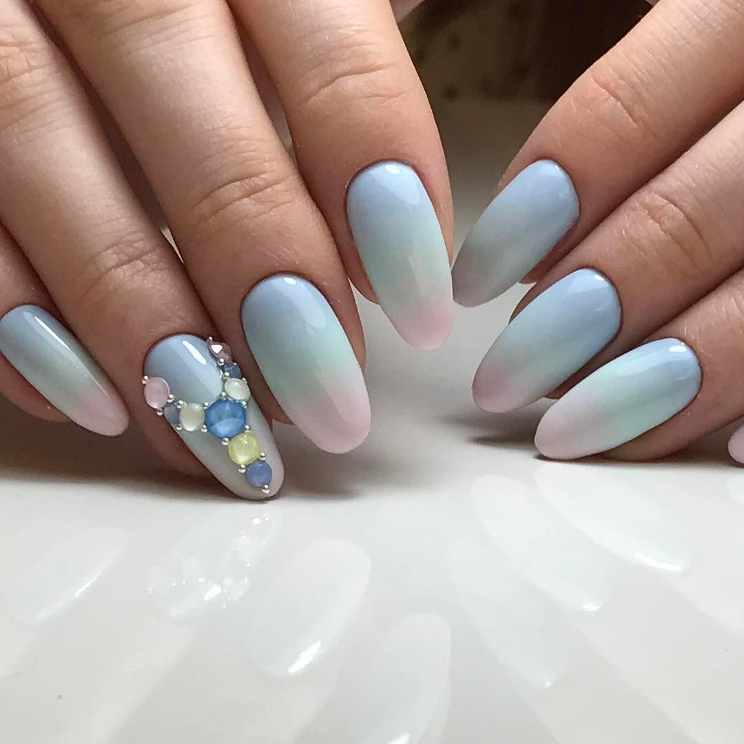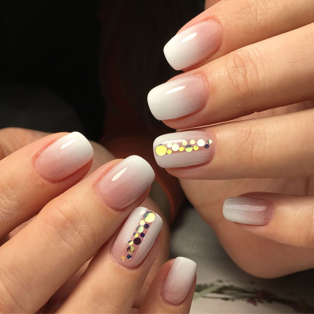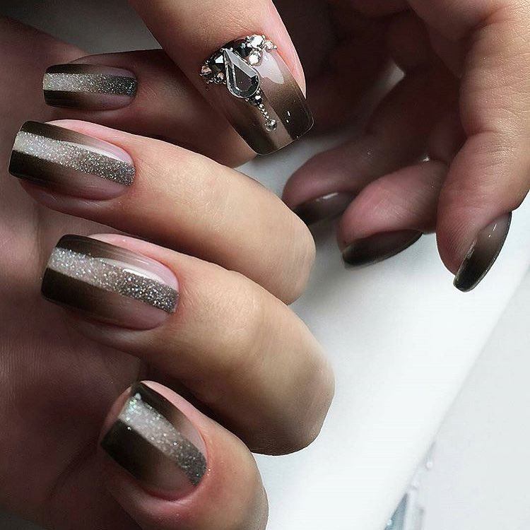 Comme mentionné ci-dessus, le design du dégradé lui-même est très beau. Cependant, beaucoup de filles veulent toujours le compléter avec des détails intéressants. Il peut s'agir d'un décor sous forme de perles, de strass, d'étincelles ou d'éléments en feuille. Mais de plus en plus, le dégradé est combiné à d'autres types de design.