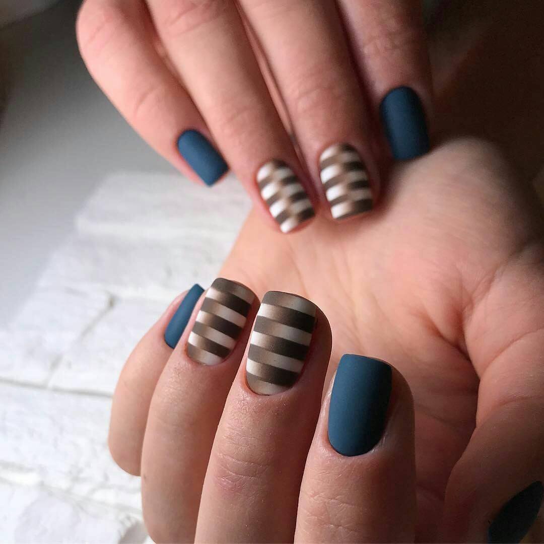 La conception des ongles rayés n'est pas seulement une option pour se détendre en mer. Cela dépend beaucoup des nuances sélectionnées. De plus, il n'est pas nécessaire de faire des bandes sur chaque ongle. La solution la plus optimale est de ne les utiliser que sur quelques ongles.
