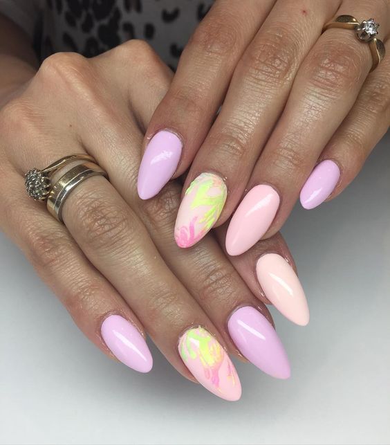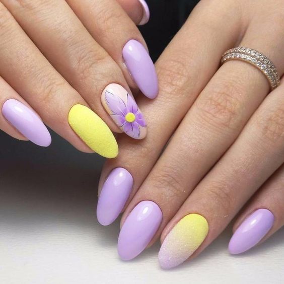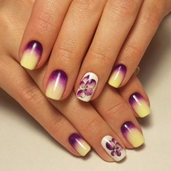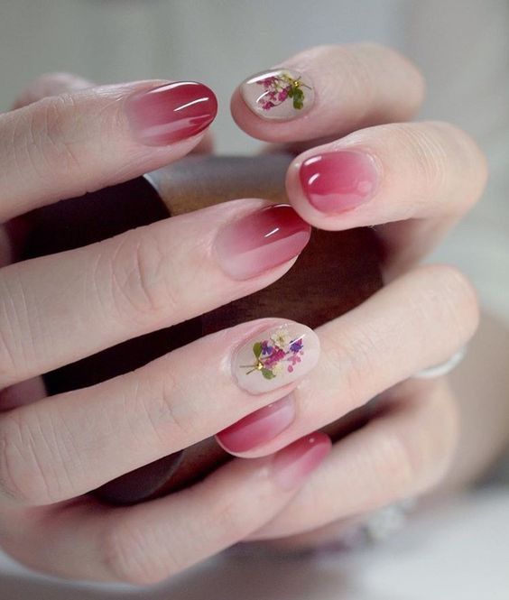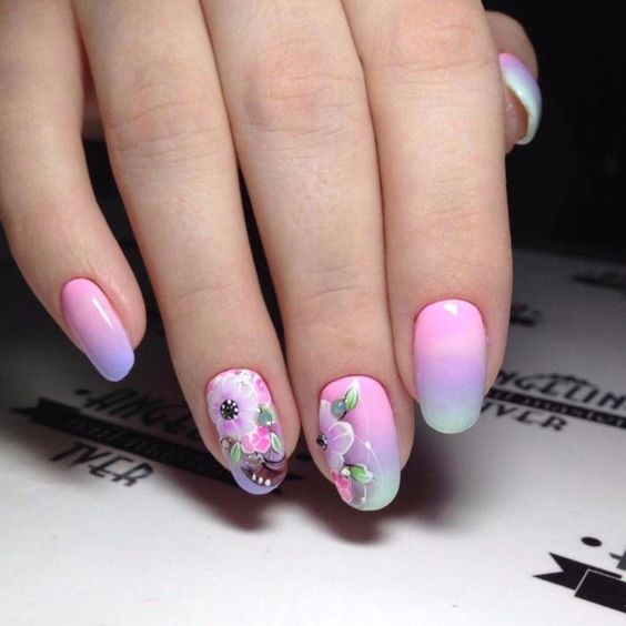 Très souvent, ce type de manucure est complété par divers dessins. Au printemps, les filles choisissent principalement des fleurs. Selon la technique d'application, le motif sera complètement différent.