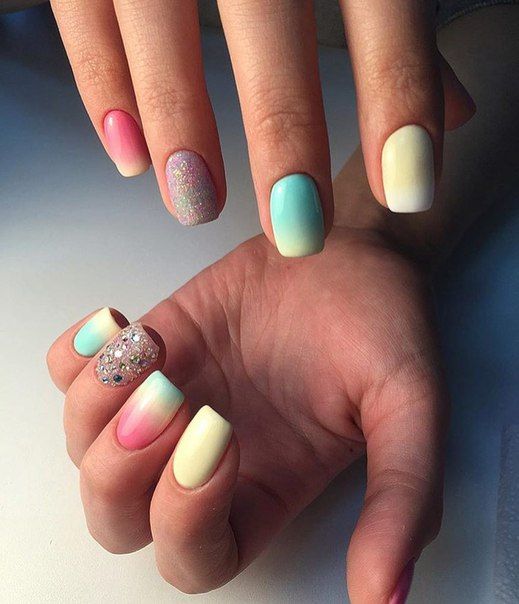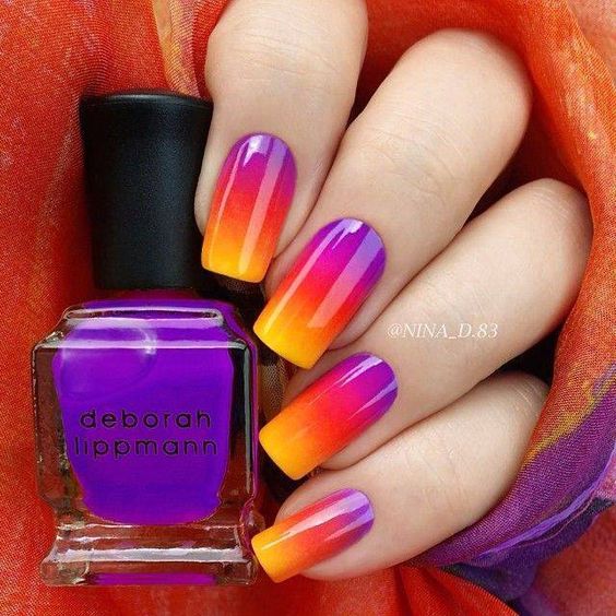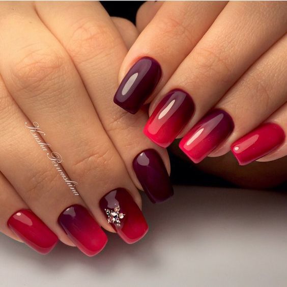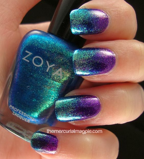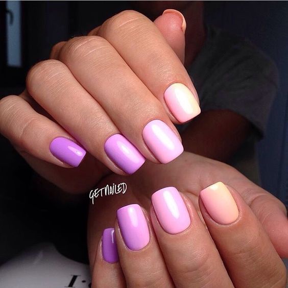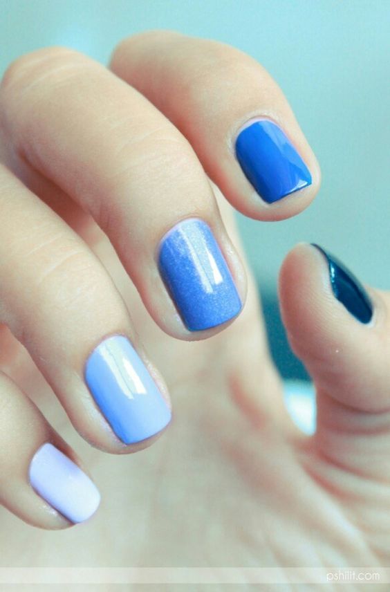 Ne faites pas tous les ongles les mêmes, car vous pouvez montrer de l'originalité. Par exemple, faites la transition des ombres sur plusieurs doigts du haut vers le bas et inversement sur les autres. Cela semble plutôt inhabituel.