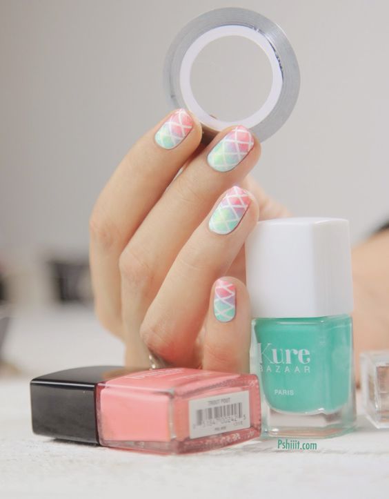 Sur une surface lisse ou un miroir, appliquez un peu de vernis léger, puis toute autre teinte que vous aimez. L'essentiel est de les appliquer de manière à ce que les bords de chaque couleur soient en contact et même un peu superposés.