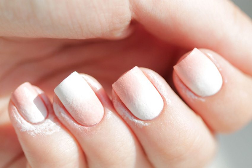 Lors de la création d'un tel design, des vernis, une éponge, une base et une couche de finition sont nécessaires. Vous devez d’abord préparer les ongles et leur donner une forme. Ensuite, vous devez appliquer une couche de base ou une couche transparente. Cela aidera à protéger les ongles, à les renforcer et à rendre la manucure plus résistante. Ce n'est qu'après le séchage de cette couche que nous appliquons le vernis principal. Le blanc convient le mieux car il se marie bien avec presque tous les tons.