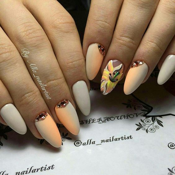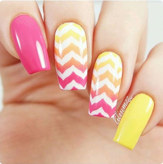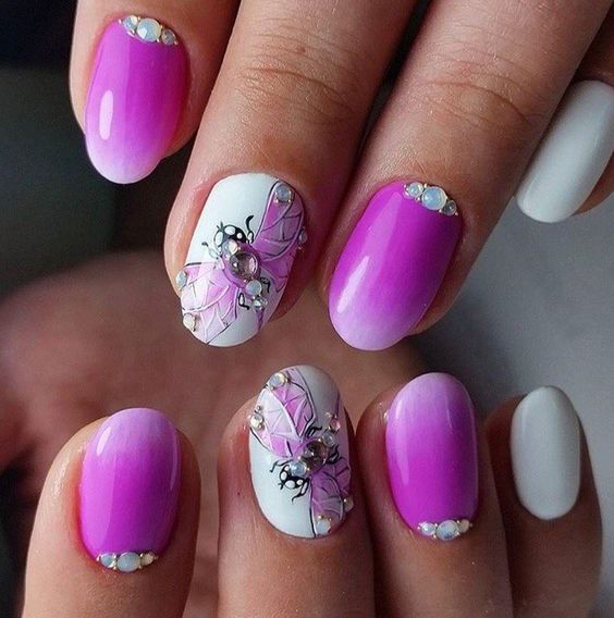 La manucure à gradient semble autosuffisante. Mais parfois, je veux compléter un peu. Dans ce cas, nous suggérons de prêter attention à divers dessins. Après tout, avec leur aide, vous pouvez définir le caractère du dessin. Par exemple, en choisissant un dessin laconique avec des nuances neutres de vernis, une manucure aura l’air délicat et même romantique. À son tour, en combinant des lignes géométriques avec des couleurs vives, vous obtiendrez un design plus audacieux et audacieux.
