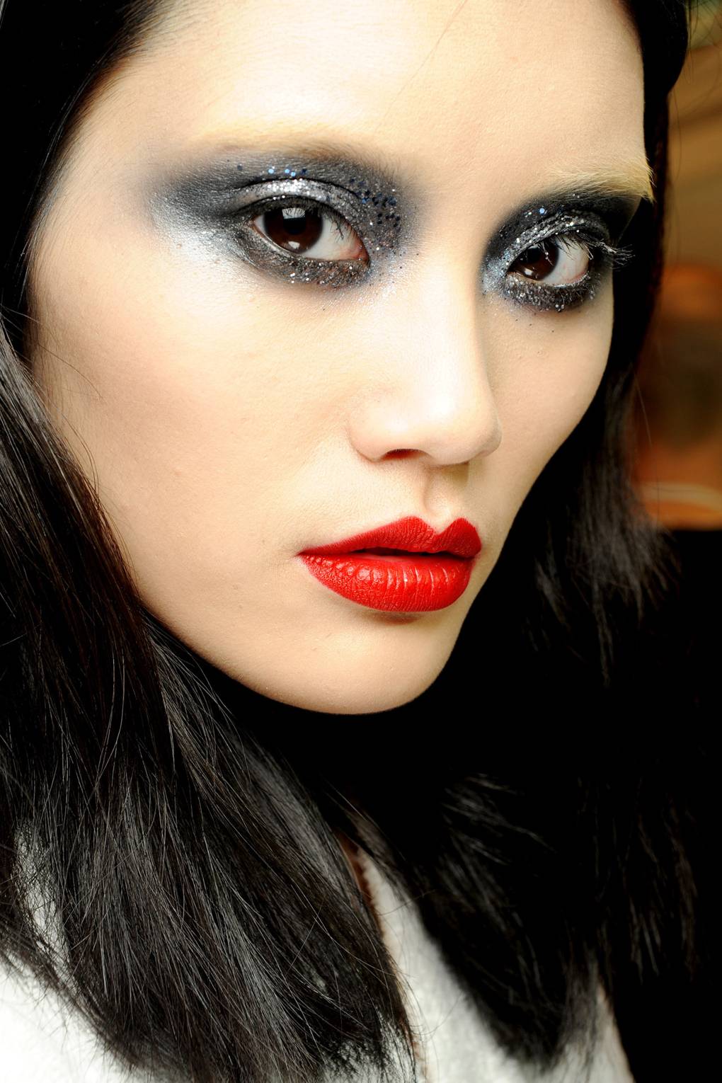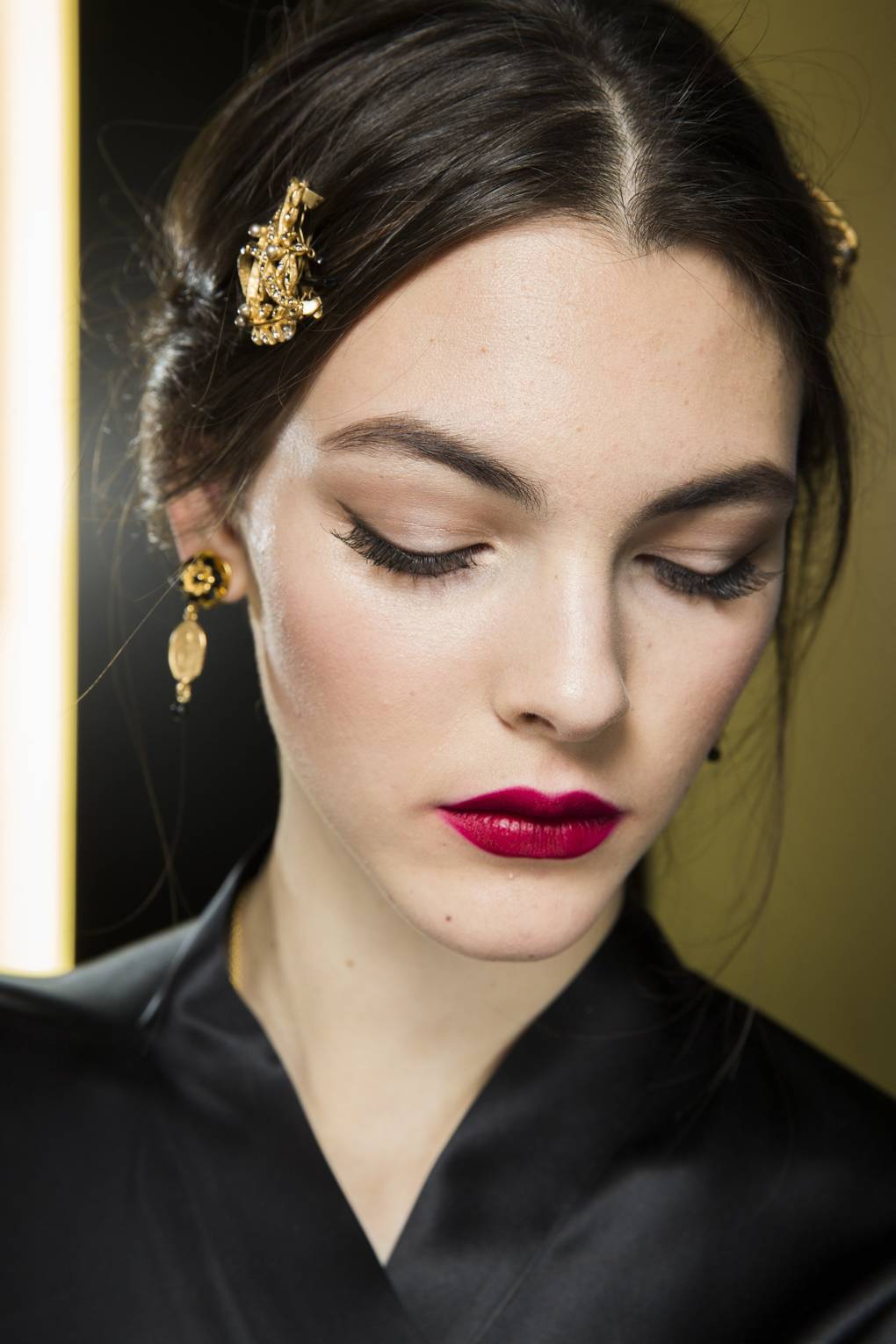 Une autre couleur de rouge à lèvres à la mode cet hiver était le violet. Le rouge à lèvres violet contribuera idéalement à créer un regard mystérieux et intriguant. Un tel rouge à lèvres sera indispensable pour créer un maquillage de fête ou de soirée. Malgré le fait que cette année, le maquillage pour les lèvres à la mode est une application floue et légèrement floue de rouge à lèvres, les couleurs pourpres et violettes s’appliquent à l’aide d’un pinceau fin afin de souligner le contour net des lèvres et de le rendre plus expressif.