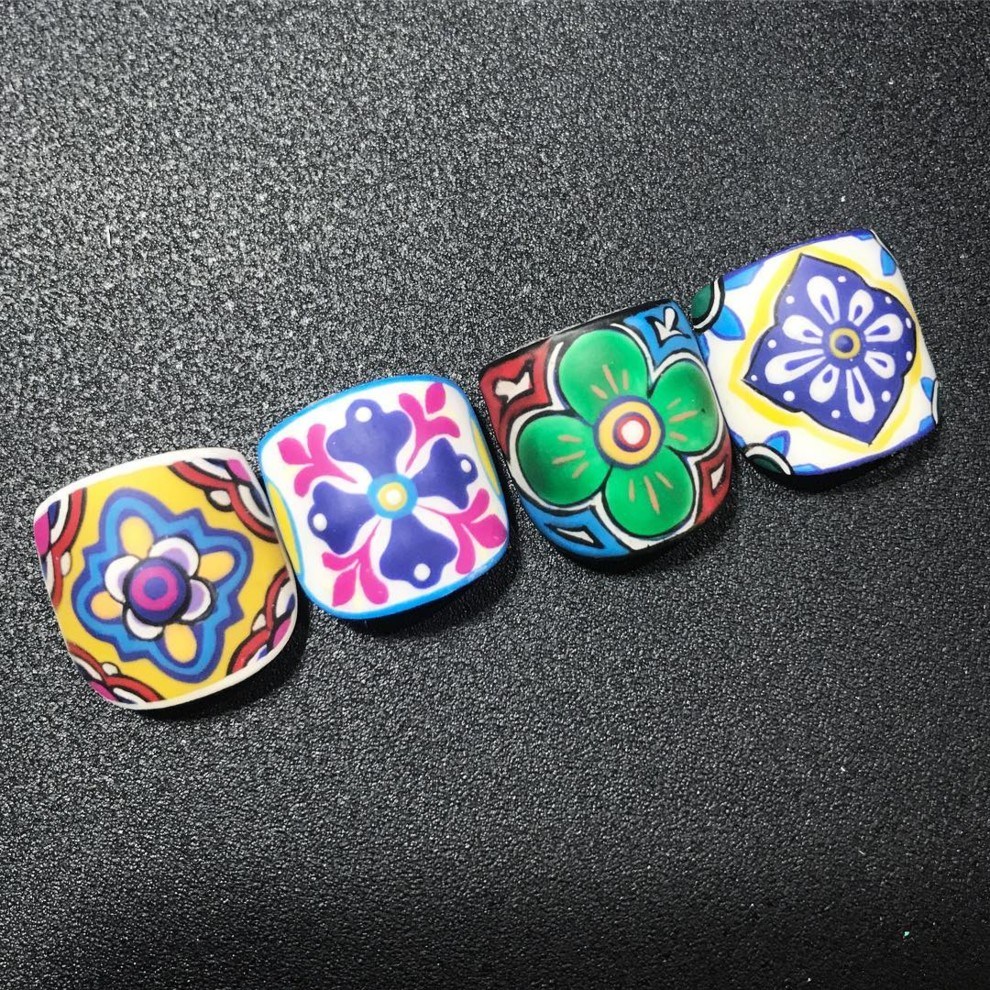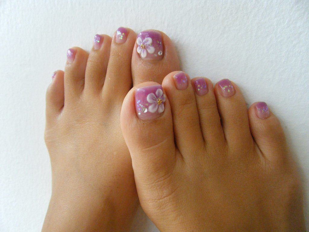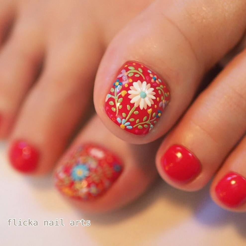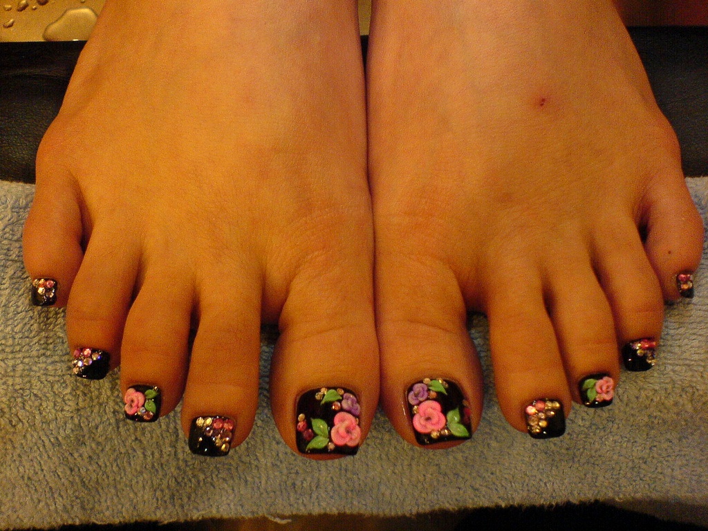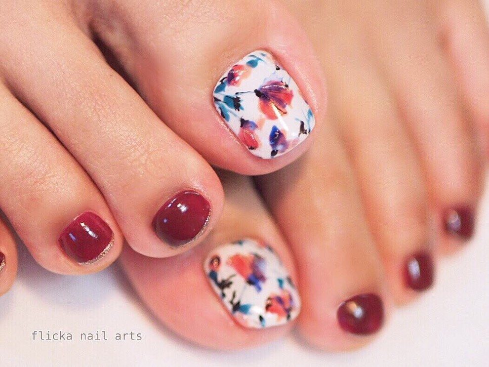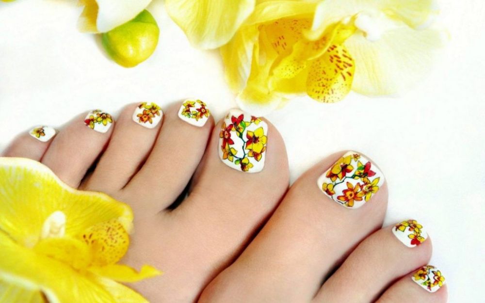 Des fleurs légèrement naïves, simples et élégantes prennent vie dans une pédicure.