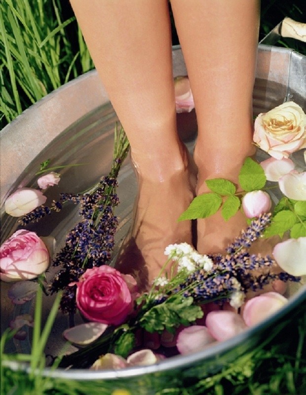 Masser vos pieds avec une crème hydratante aux huiles naturelles qui compensera les lipides et préviendra la déshydratation de la peau qui nous menace chaque été. À propos, il est également conseillé de prendre soin de vous tous les soirs avec un léger massage du pied à la cuisse, car cette procédure utile fournit une sortie de sang et donne un réel repos à vos jambes.