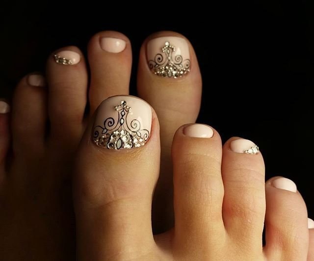 Le véritable art des bijoux en pédicure est proposé par les stylistes en 2026. Grâce aux bijoux sur la plaque à ongles, vos jambes ressembleront à une copie unique sur la devanture avec des bijoux. Ce type de pédicure s’intégrera parfaitement dans l’image festive et brillante d’une soirée dans une discothèque.