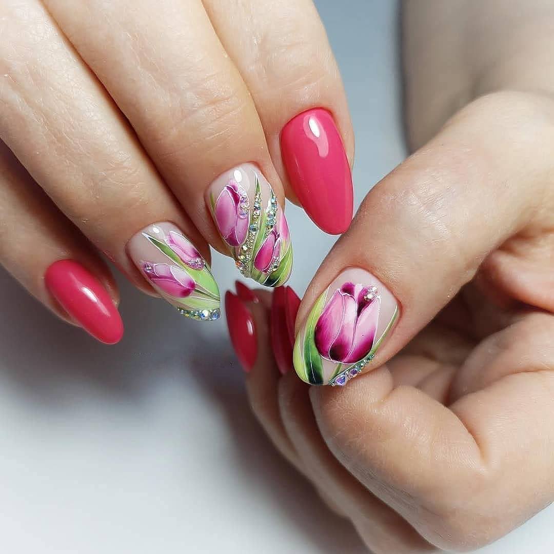 L’option la plus appropriée pour tous est peut-être une manucure avec un motif floral. Le fait est que ces sujets reflètent le mieux l'élégance, la tendresse et la légèreté de la fille. Mais en même temps, le style d’application et la palette de couleurs de la conception peuvent être très différents.