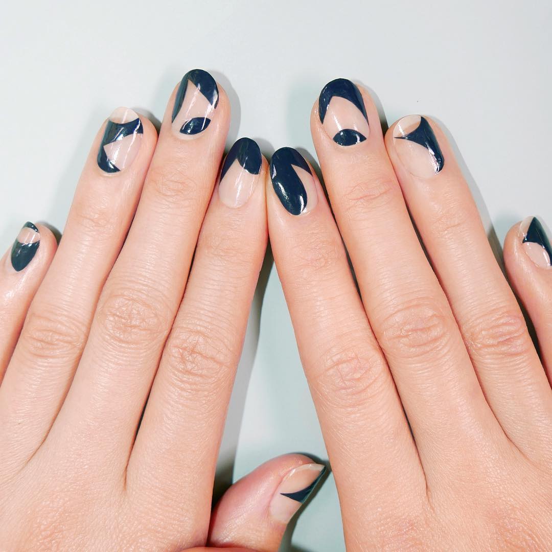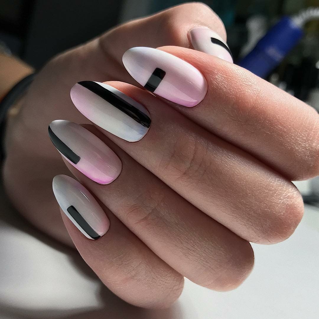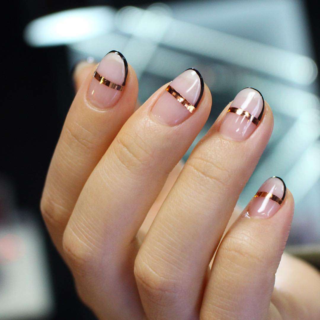 Ce style de conception de manucure n'est pas une nouveauté, mais il est néanmoins particulièrement populaire. Il est choisi par les amateurs d'expériences, ainsi que de minimalisme. Un petit espace non ombré qui reste en train d’appliquer le design est élégant et plutôt inhabituel. Par conséquent, soyez prêt à ce que les manucures soient considérées avec un intérêt particulier.