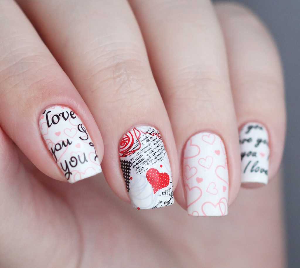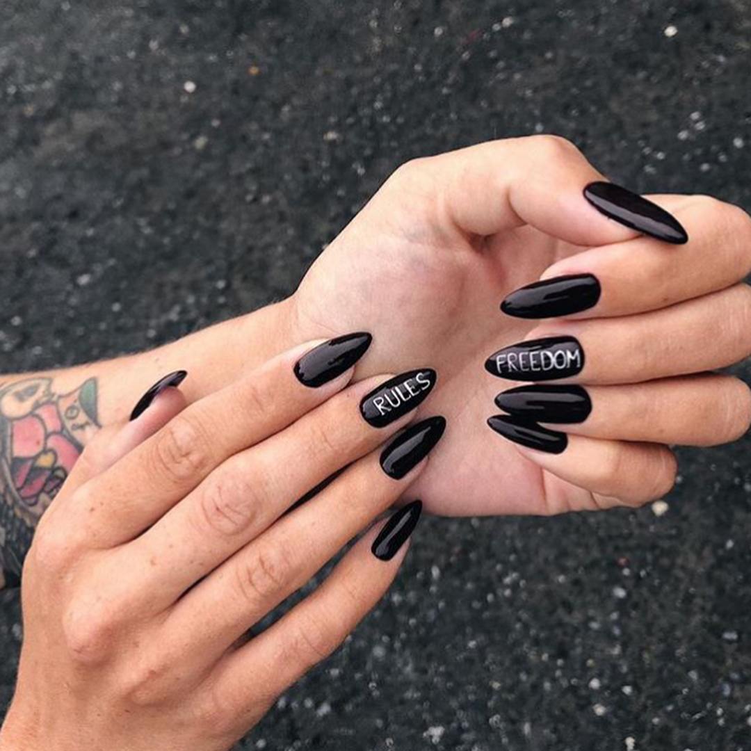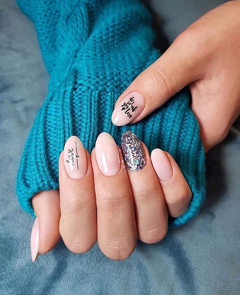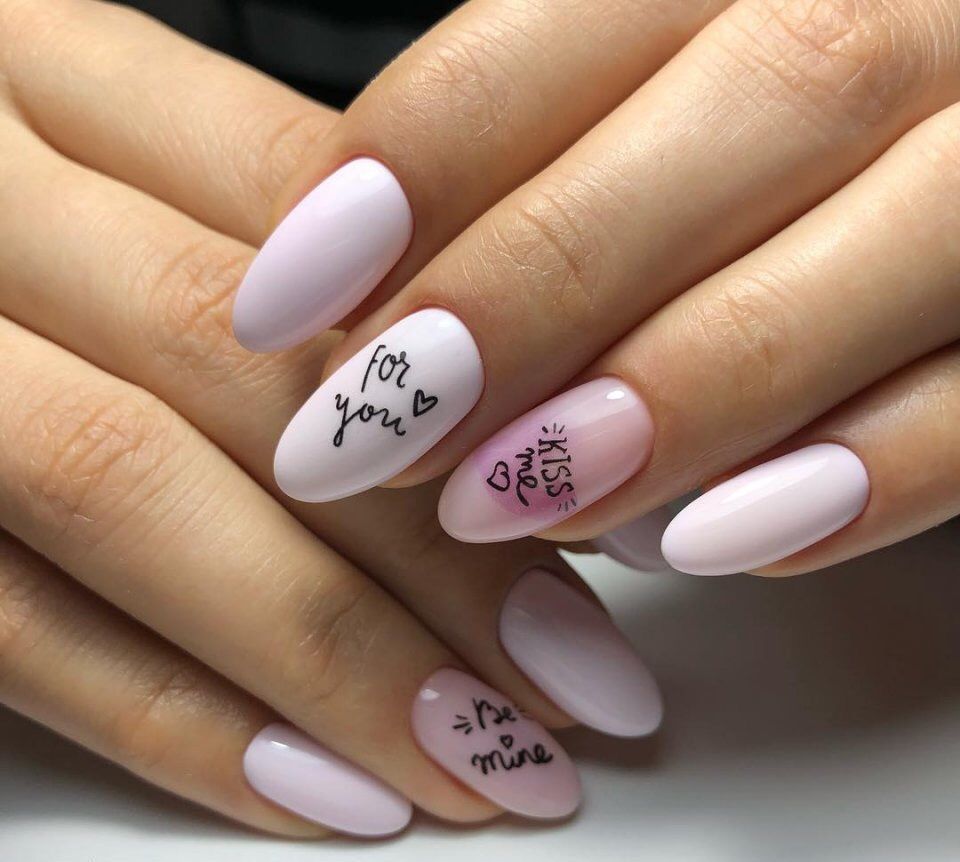 Une autre tendance de 2026 est les inscriptions. Ils peuvent être très différents, commençant par des citations et des phrases préférées et se terminant par les slogans de sociétés célèbres. Toutes les fashionistas savent sûrement que les inscriptions sont utilisées sur les vêtements, les chaussures et les accessoires. Par conséquent, il n’est pas surprenant qu’une telle tendance se soit déplacée vers la sphère du nail art.