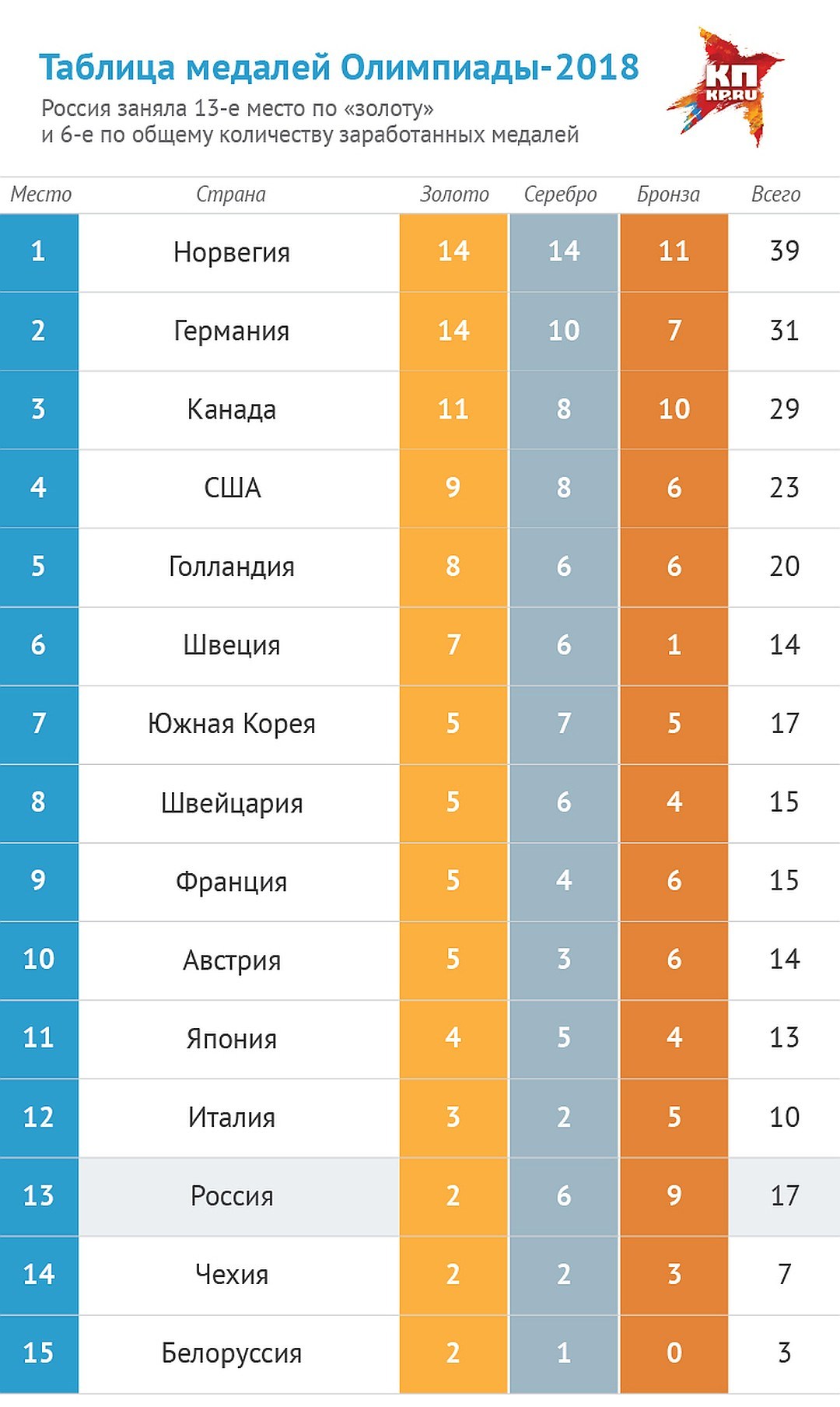 - La Norvège a réussi à gagner jusqu'à 39 médailles. La collection de médaillés comprend 14 or et 11 argent et bronze chacun.