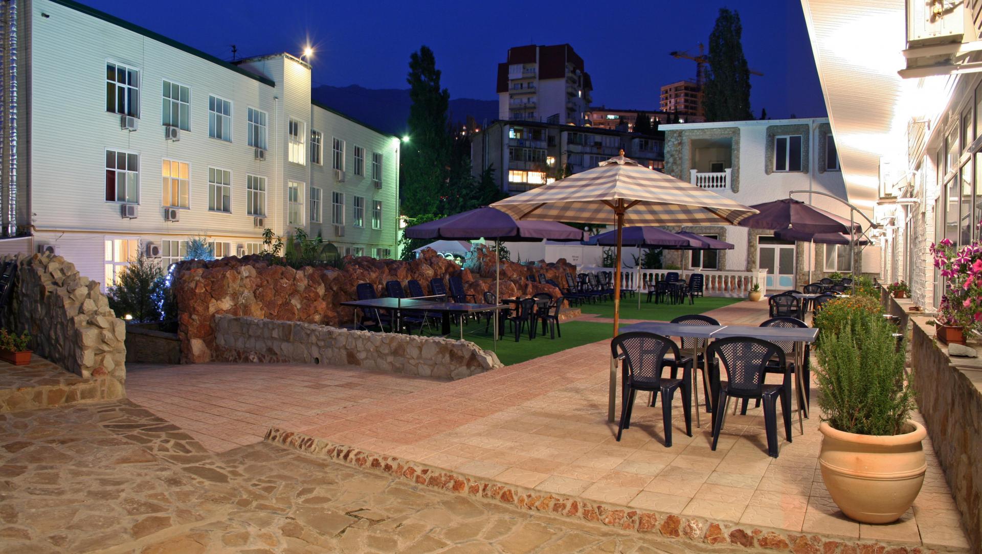- Mini-hôtel Massandra. Les chambres spacieuses à l'architecture originale coûteront 4900 roubles. jour / personne. Il y a des chambres de luxe avec un coût de 10.000 roubles. Le paiement comprend l'hébergement, la piscine, le billard, le parking, le buffet.