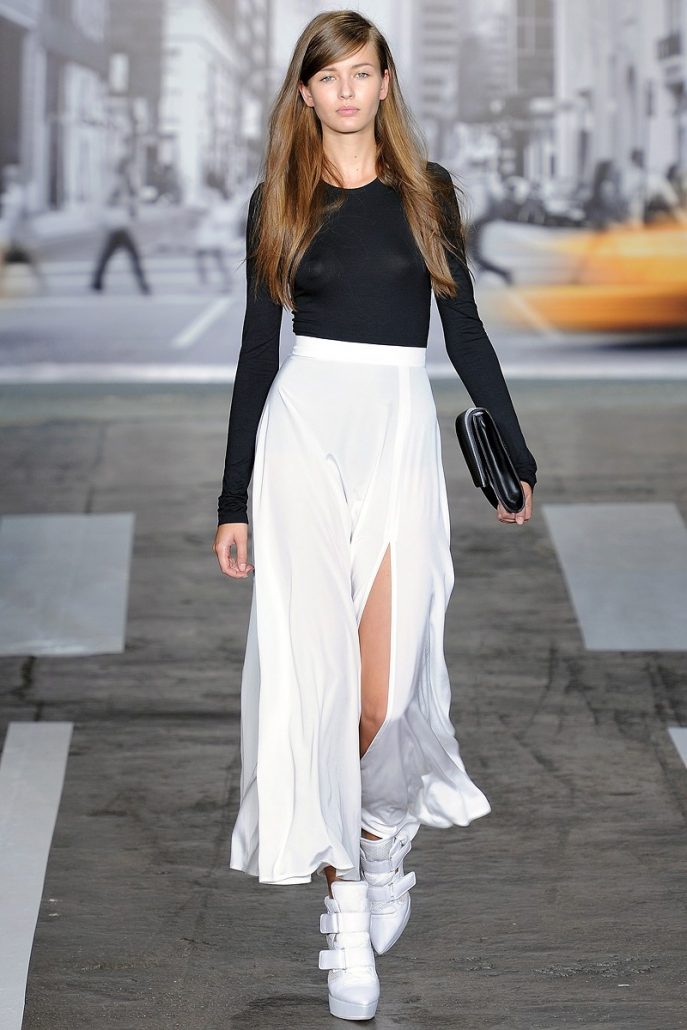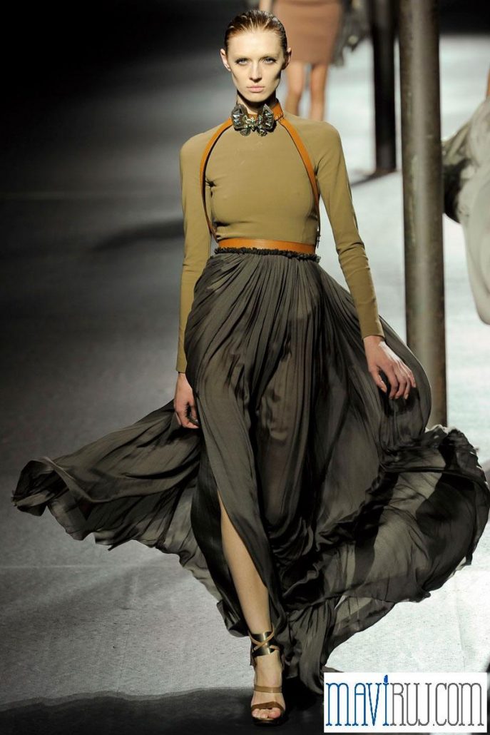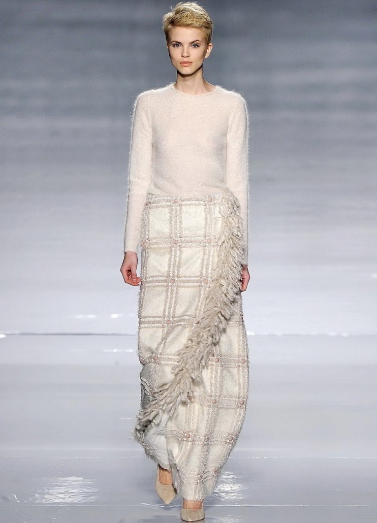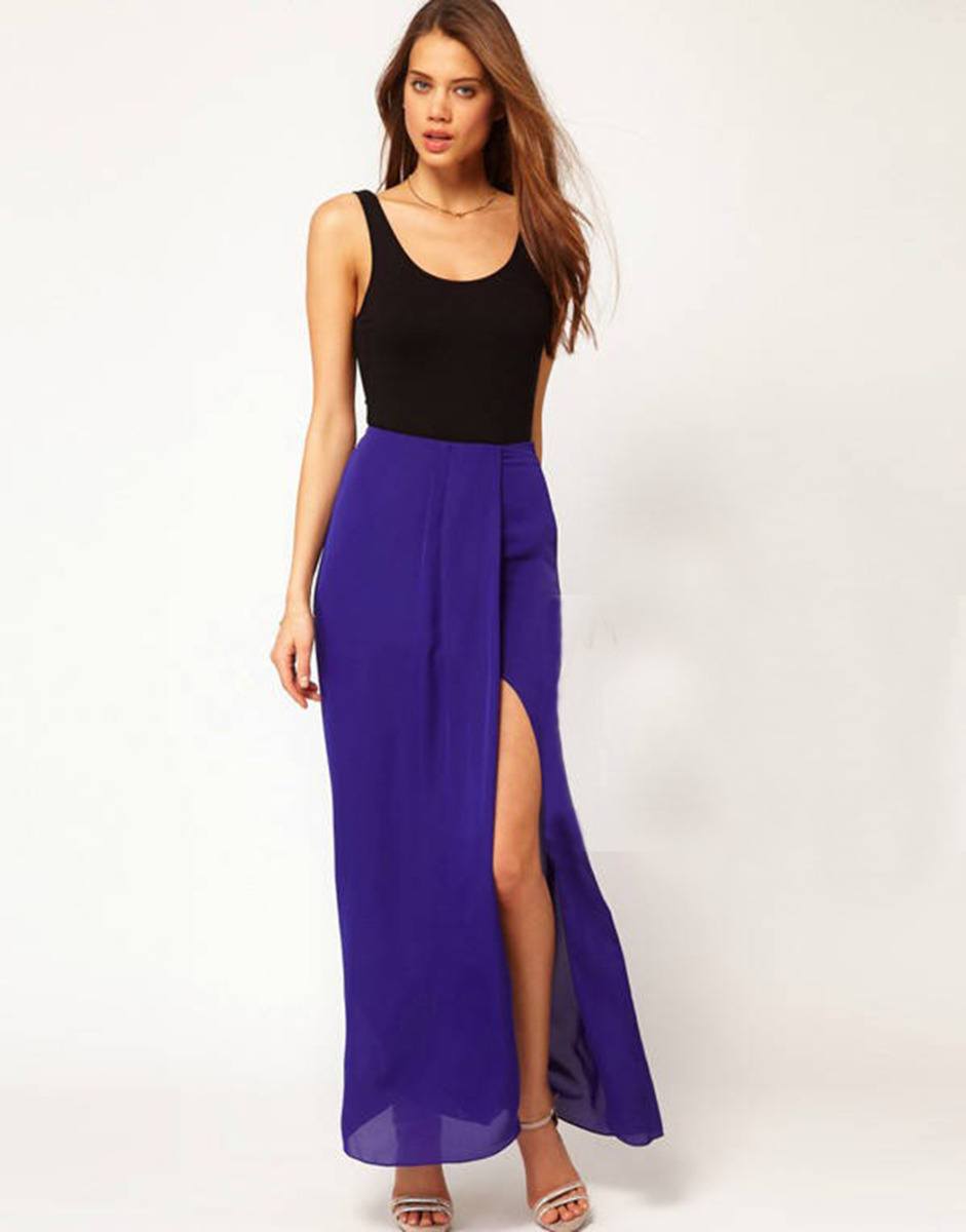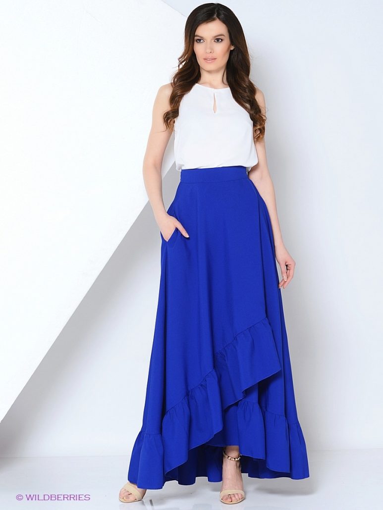 Une jupe de longueur maximale sera une excellente option pour les filles qui veulent cacher les défauts de leurs jambes. Un tel style les cachera de manière fiable des yeux environnants, ne s'ouvrant que légèrement mystérieusement à cause de leur odeur.