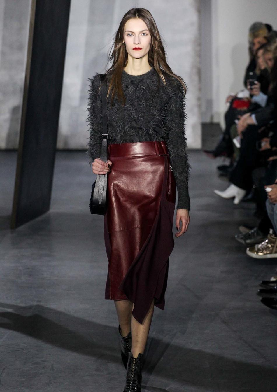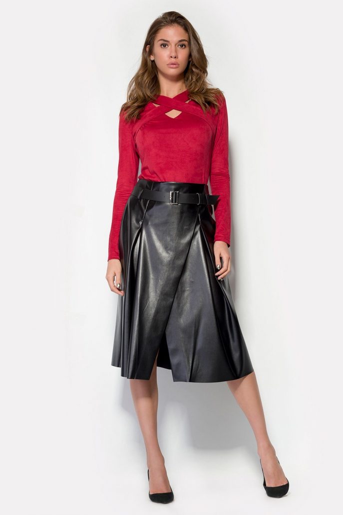 Les articles en cuir eux-mêmes peuvent paraître agressifs. Par conséquent, les designers décorent les jupes d'une odeur de cuir avec divers éléments féminins (strass, volants, plis, etc.). Un tel modèle sera particulièrement populaire au printemps-automne.