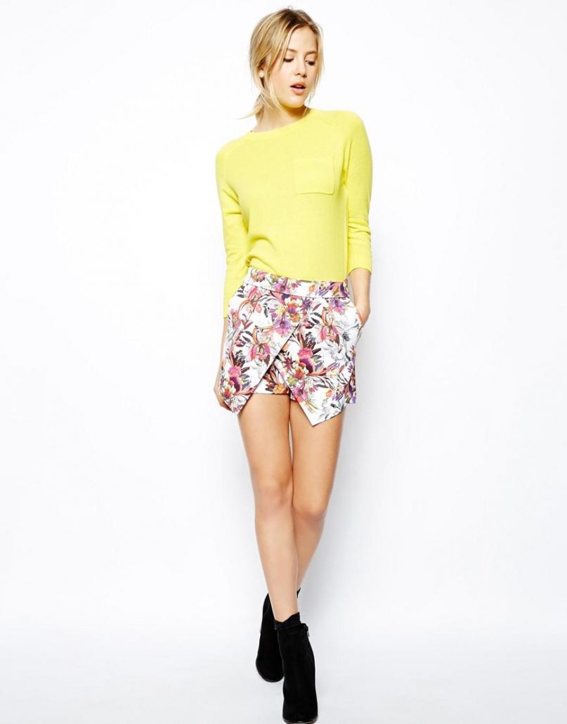 Lorsque vous choisissez un jupe-short, vous devez faire attention à la forme des jambes. Si on peut les appeler idéales, vous pouvez alors choisir une mini longueur en toute sécurité. Si vous constatez des défauts, il est préférable de vous arrêter à la longueur du genou.