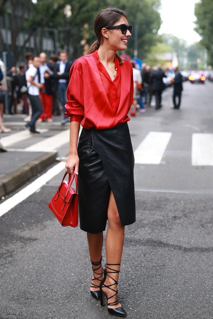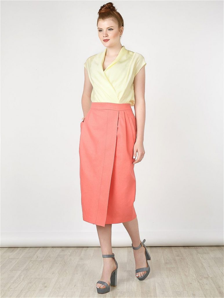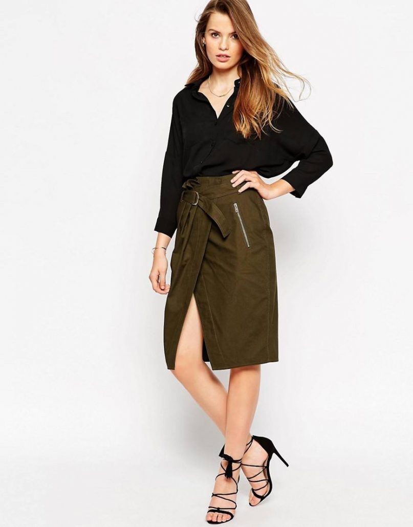 Dans un style professionnel, une jupe portefeuille sera spectaculaire, avec un chemisier classique ou une chemise et des chaussures à talons hauts.