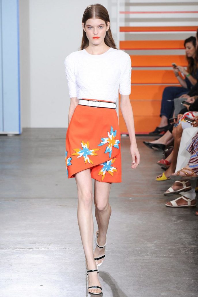 Une jupe avec une odeur en été ne sera pas moins pertinente qu'une mini. Il peut être droit, évasé, plissé, etc. Habituellement, de telles jupes sont plates.Dans le même temps, l'accent est mis sur un sommet lumineux ou des accessoires intéressants. Une longue incision qui expose la jambe au niveau de la cuisse ajoutera une touche de sexualité à l'image.