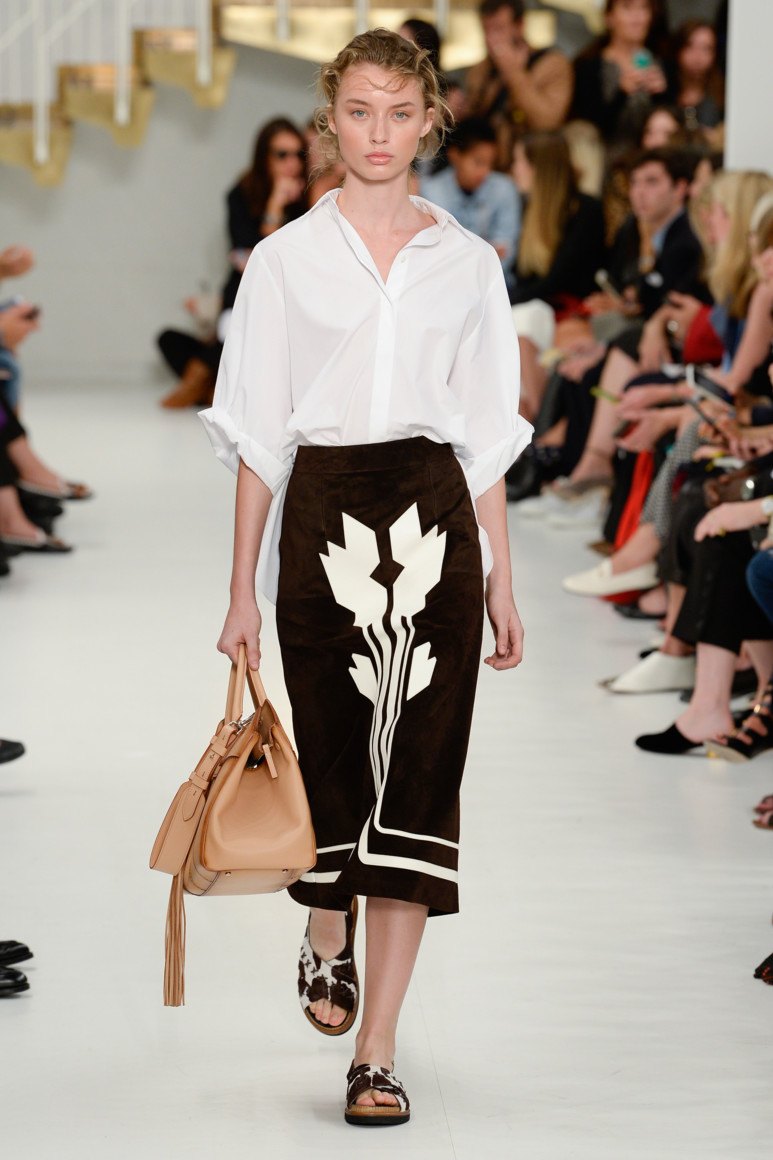 En règle générale, une jupe de tulipe est légèrement au-dessus du genou et est combinée avec des chaussures à talons hauts. Ce modèle de jupe peut souvent être trouvé sur les filles qui travaillent dans des bureaux et sont forcées d'adhérer à un certain style professionnel. Visuellement, elle raccourcit la croissance de la fille. Elle doit donc être portée avec des chaussures à talons hauts. Ce modèle ajoute du volume aux hanches d'une fille, ce qui sera utile pour les filles privées de formes luxuriantes et alléchantes. Souvent, une jupe de tulipe est utilisée en combinaison avec un haut dissimulé sous la ceinture.