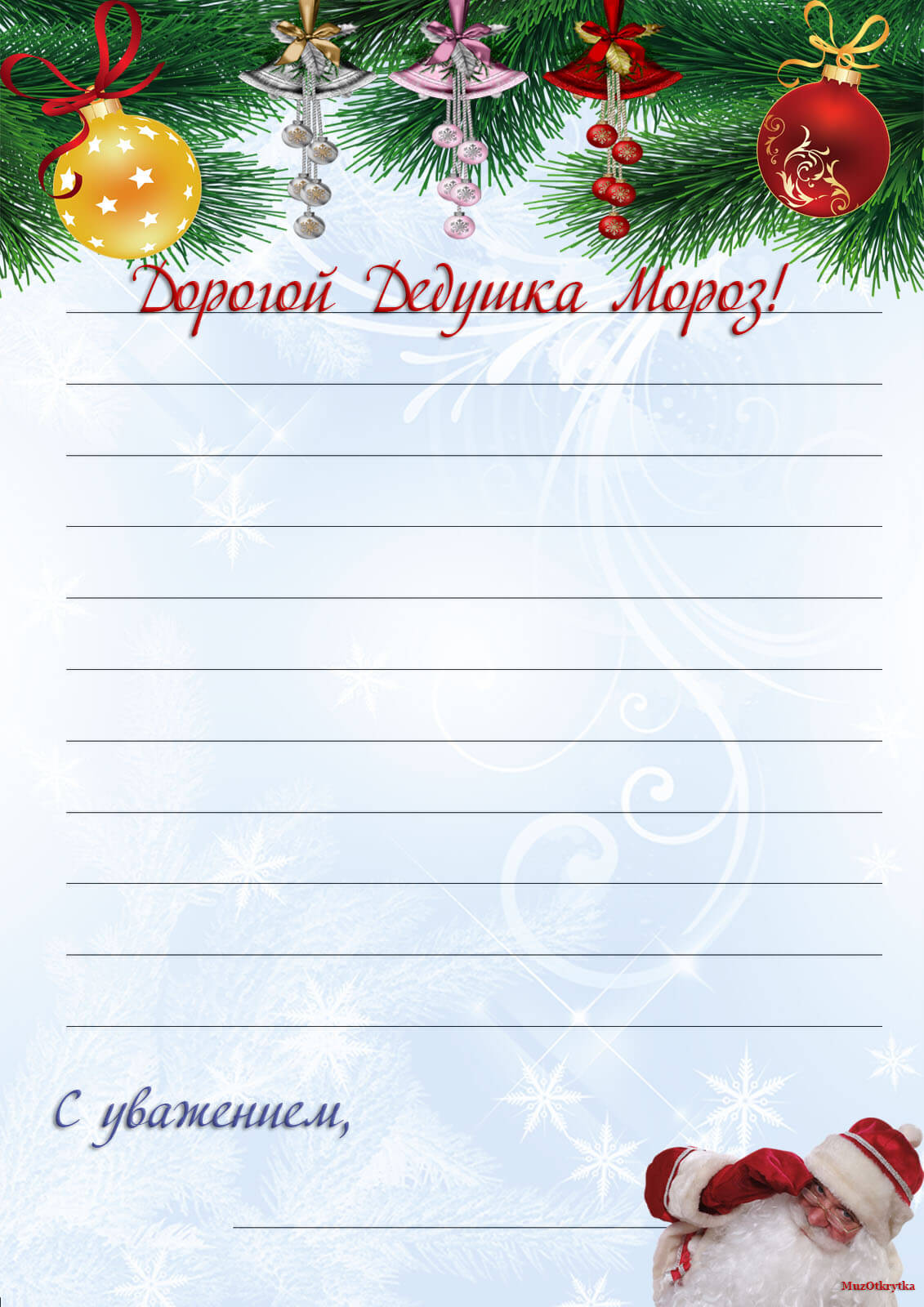 - Quelques lignes sur votre amour pour le père Noël. Ici, il vaut la peine de remercier le magicien pour ses cadeaux passés.