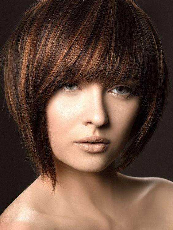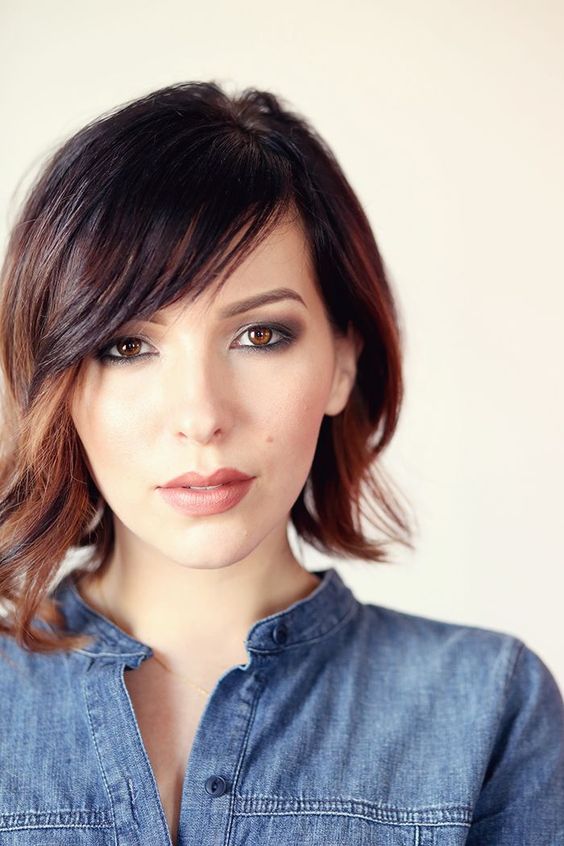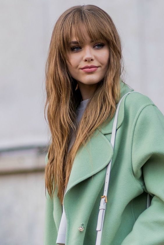 La frange raccourcie a l'air très moderne. Il donne au visage fraîcheur, ouverture et légèreté. Par conséquent, le plus souvent, il est choisi par les jeunes filles. La version classique de la frange convient à tout âge. En outre, elle donne à l'image une touche de romance.
