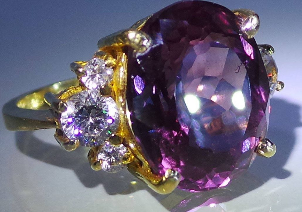 Les pierres précieuses provenant de gisements brésiliens et africains sous éclairage artificiel ont une couleur rouge plus saturée que celle présente dans les pierres de l'Oural. À la lumière naturelle, ils ont une teinte brun verdâtre.