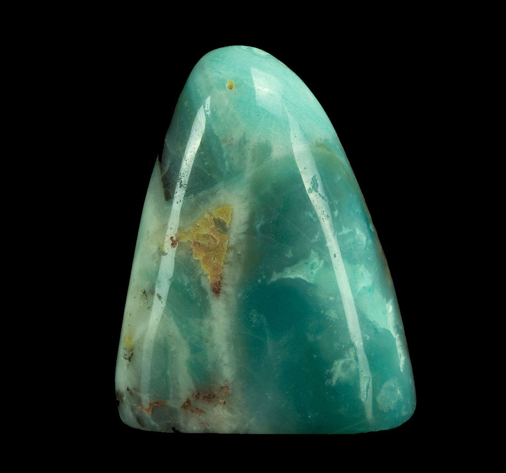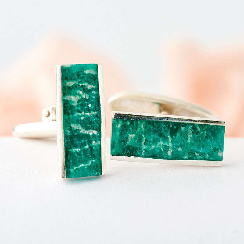 - Krupnoperitovy. Il a une teinte turquoise. Les croissances d'albite blanches présentes dans la structure de la pierre créent un motif clair à sa surface.