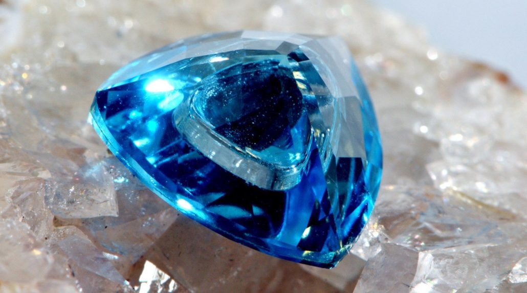 L'un des minéraux les plus exquis est la topaze. On l'appelle aussi pierre bleue. C'est un excellent bijou qui peut décorer n'importe quel bijou. La brillance froide lui confère une élégance particulière et l'éclat royal lui confère de l'éclat. Dans des conditions naturelles, la topaze bleue est généralement accompagnée d'une suite sous forme de minéraux - tourmaline, fluorite, morion et autres spécimens.