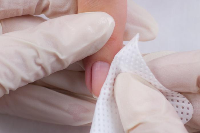 Tout d'abord, il est nécessaire de traiter les mains du client avec un antiseptique. Dans le même temps, notez que le capitaine doit toujours travailler avec des gants spéciaux.
