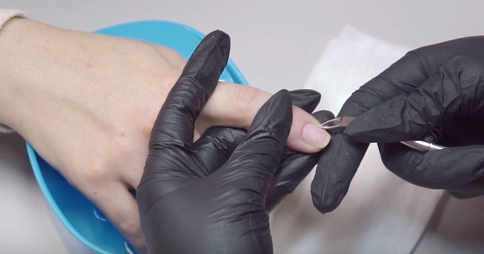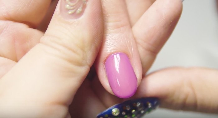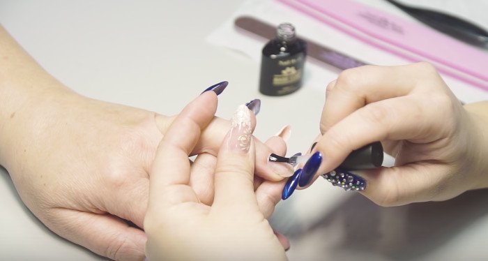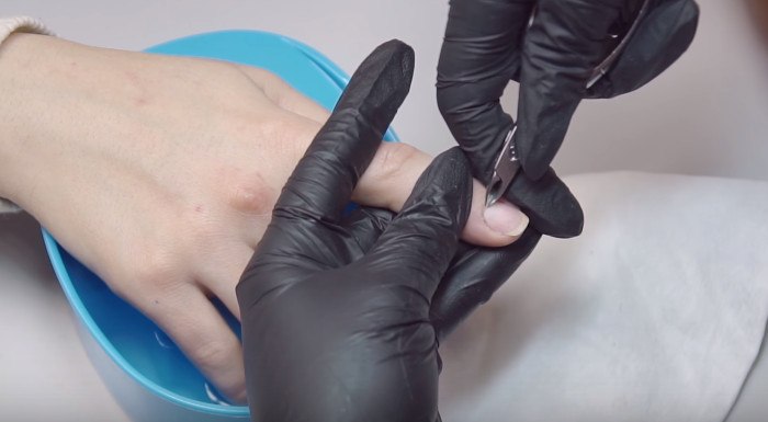 Vous pouvez couper la cuticule avec des ciseaux ou des forceps. Il est important de le faire en une ligne continue afin qu'aucune bavure ne se forme après la procédure. Ainsi, il est nécessaire de traiter chaque clou.