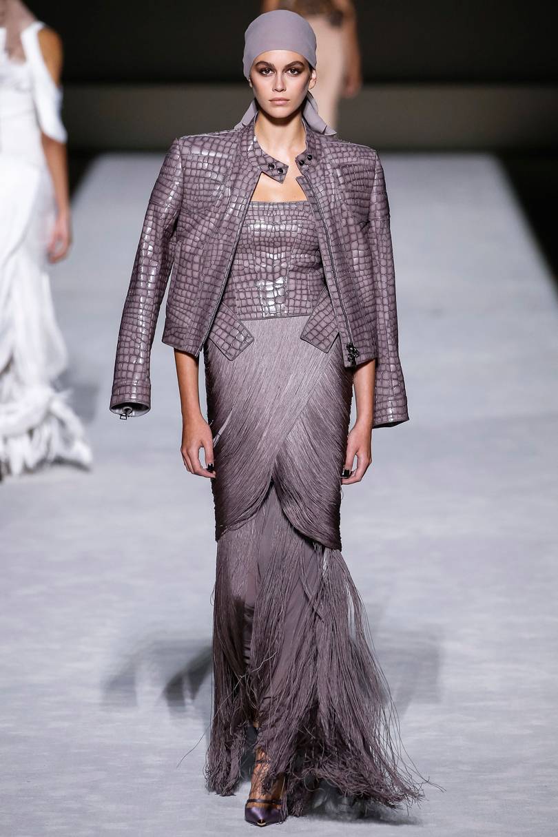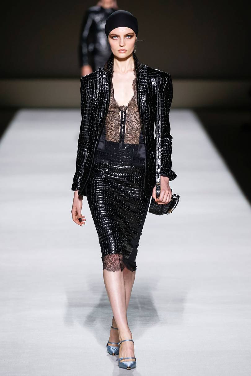 La nouvelle collection Tom Ford comprend la soie, le cuir embossé, la dentelle, la lavande cintrée, le glamour, les tendances de la mode et une goutte de provocation. Comme l'a dit la designer: "Tous les vêtements présentés dans le spectacle sont flatteurs". Afin de vous sentir plus mince, plus confiant et plus grand, il vous suffit de mettre une jupe - un crayon jusqu'au genou ou des trench-coat modernisés. En outre, différents styles de vestes en cuir, associés à un haut séduisant, peuvent vous aider. Les filles devraient ajouter à leur garde-robe élégante une robe drapée en cuir noir, un corset léopard, un tailleur pantalon à rayures ou un manteau de fourrure moelleux.