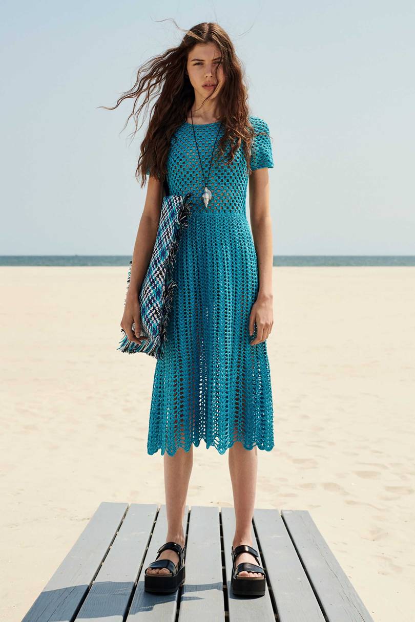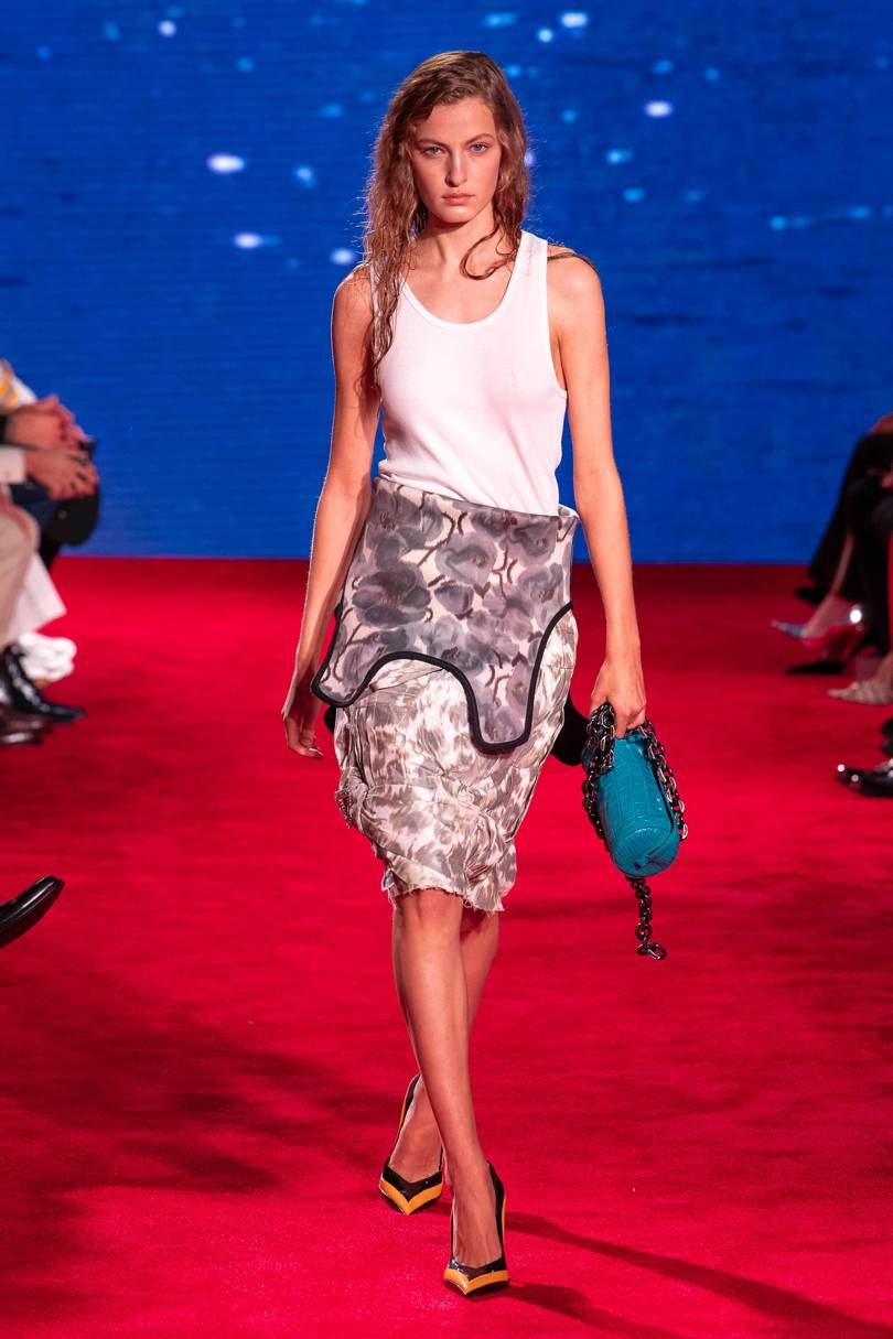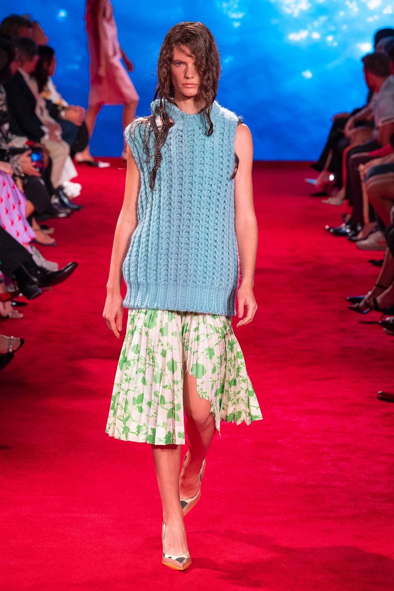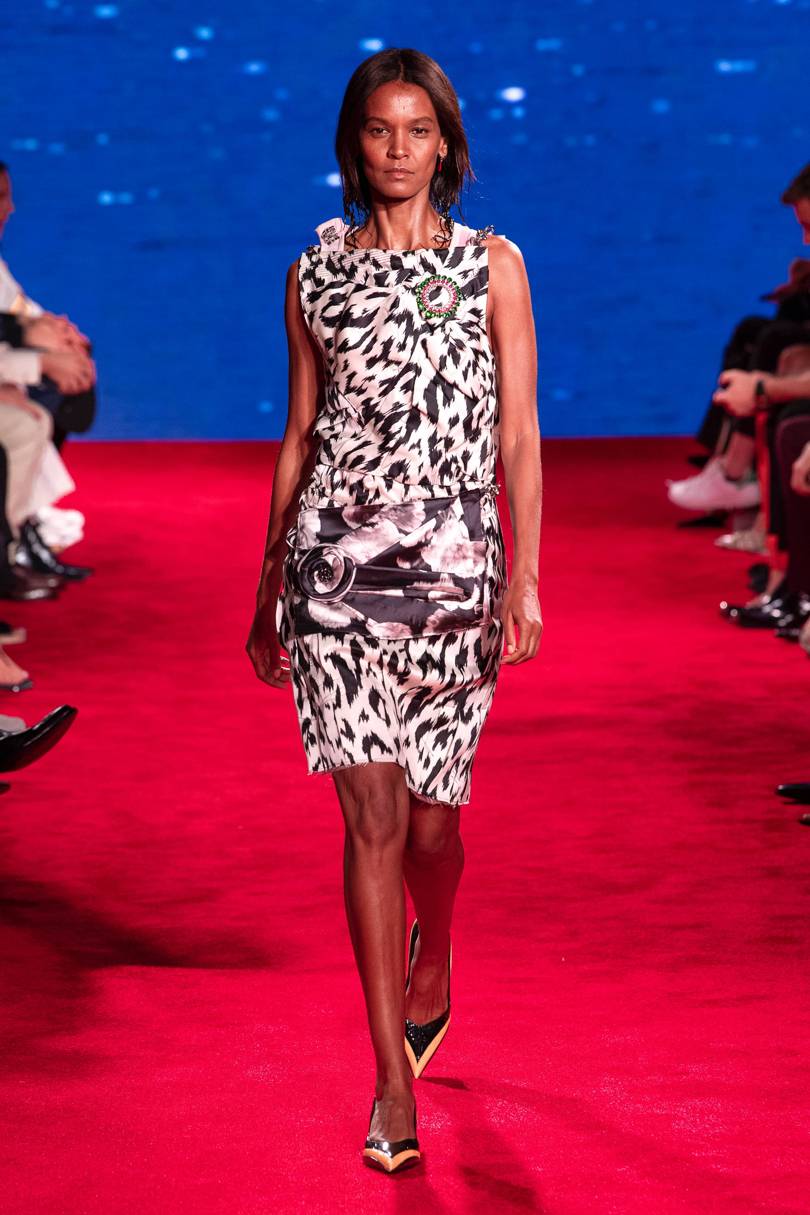 Robes de brocart, cachemire délicat, robes légères, robes à carreaux, imprimés tropicaux, rayures et cuir perforés, sandales à plateforme en liège, sacs fourre-tout de grande taille, robes ajourées, chemisiers amples, robes brodées de paillettes lumineuses - tout ceci a été modernisé par la designer, en ajoutant des fils sport - chic et newfangled. Il est difficile de croire que ce sont toutes des tenues des années 80