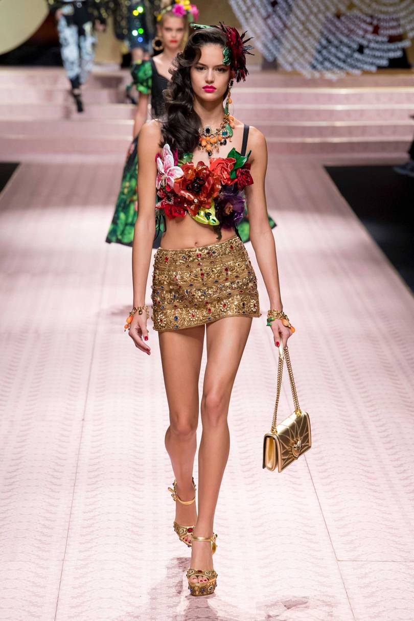 Un duo italien chic est toujours une présentation incroyable et vivante de votre nouvelle collection. Et le printemps 2026 ne fait pas exception. Plus de 150 tenues avec une quantité incroyable de couleurs vives, de nuances, d'imprimés, de décors, d'appliqués, de broderies volumétriques et de décorations. La collection présentée contient féminité et grâce. A savoir: gros bijoux, volants, volants, corsets, dentelles et brocarts, estampes diverses et nombreuses fleurs. Voici une telle abondance que Dolce & Gabbana a préparée pour nous lors du salon du printemps 2026.