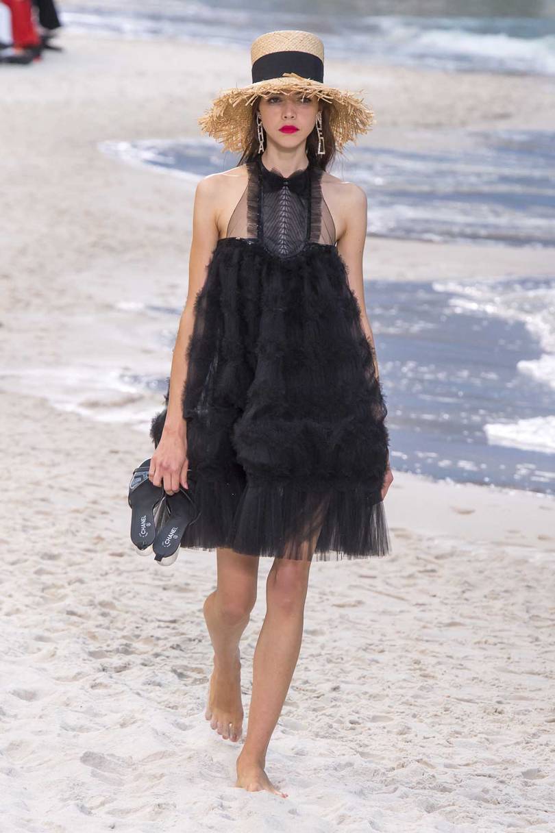 Chaque nouveau spectacle de cette marque est toujours l'attente d'un miracle. Karl Lagerfeld surprend constamment le public et ce printemps, tout le monde a été choqué par le lieu choisi pour le spectacle. La plage aménagée au Grand Palais, où se tenait la passerelle, était tout simplement incroyable. Les premières tenues ont été démontrées avec des costumes à la mode, après quoi le remplacement des jupes par des leggings a eu lieu par deux traditionnels. Des chapeaux de paille élégants ont commencé à être ajoutés aux images. Ensuite, les modèles ont commencé à apparaître sur le podium en maillots de bain et vestes en tweed, ensembles de tricots et jeans. À la fin du spectacle, des robes du soir ont été utilisées.