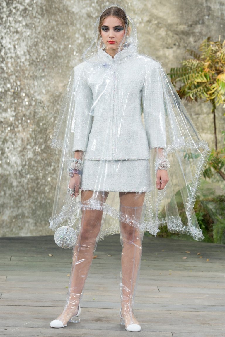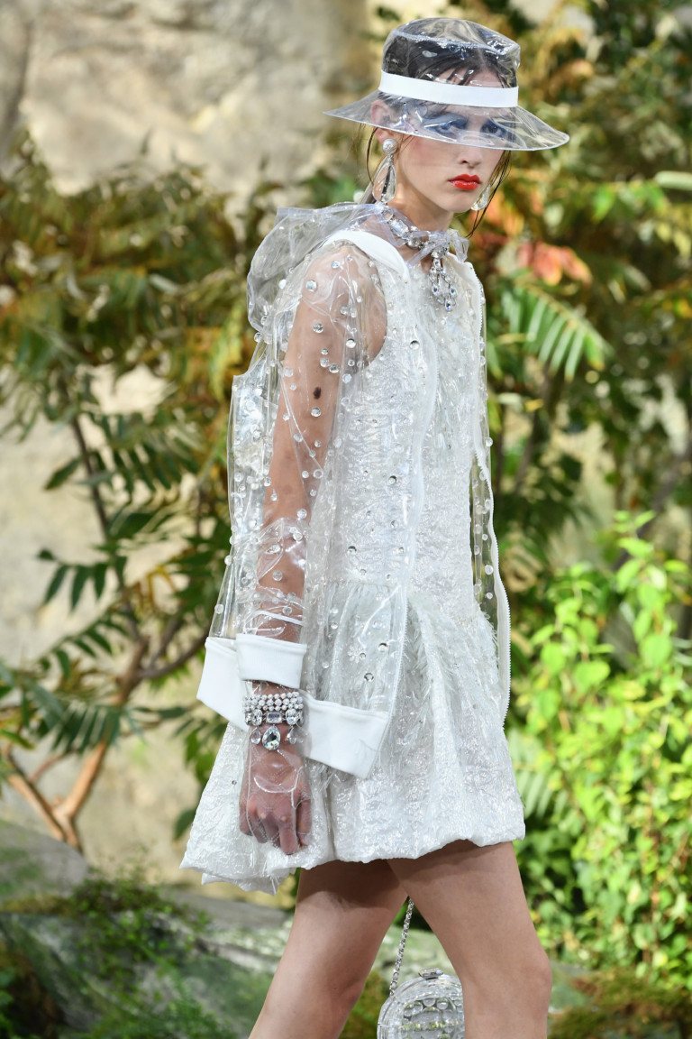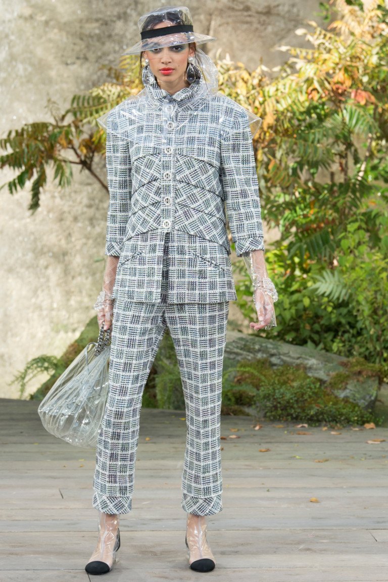 La nouvelle collection de vêtements Chanel se distingue par une caractéristique: elle a beaucoup d'amour et de romantisme. La salle comble et l'enthousiasme du public lors du défilé de la collection d'été Chanel-2018 ont confirmé que le monde entier continue d'admirer et d'aimer la légendaire Maison de Mode Chanel. Un chapeau transparent est devenu la décoration principale de la collection.Le style laconique d'un produit Chanel moderne se marie parfaitement avec un matériau transparent. Le style strict des vêtements est adouci par des chapeaux et des capuchons transparents, dans lesquels les femmes sont prêtes à conquérir de nouveaux sommets et coeurs d'hommes.