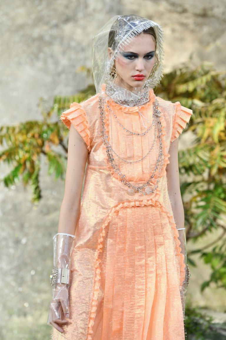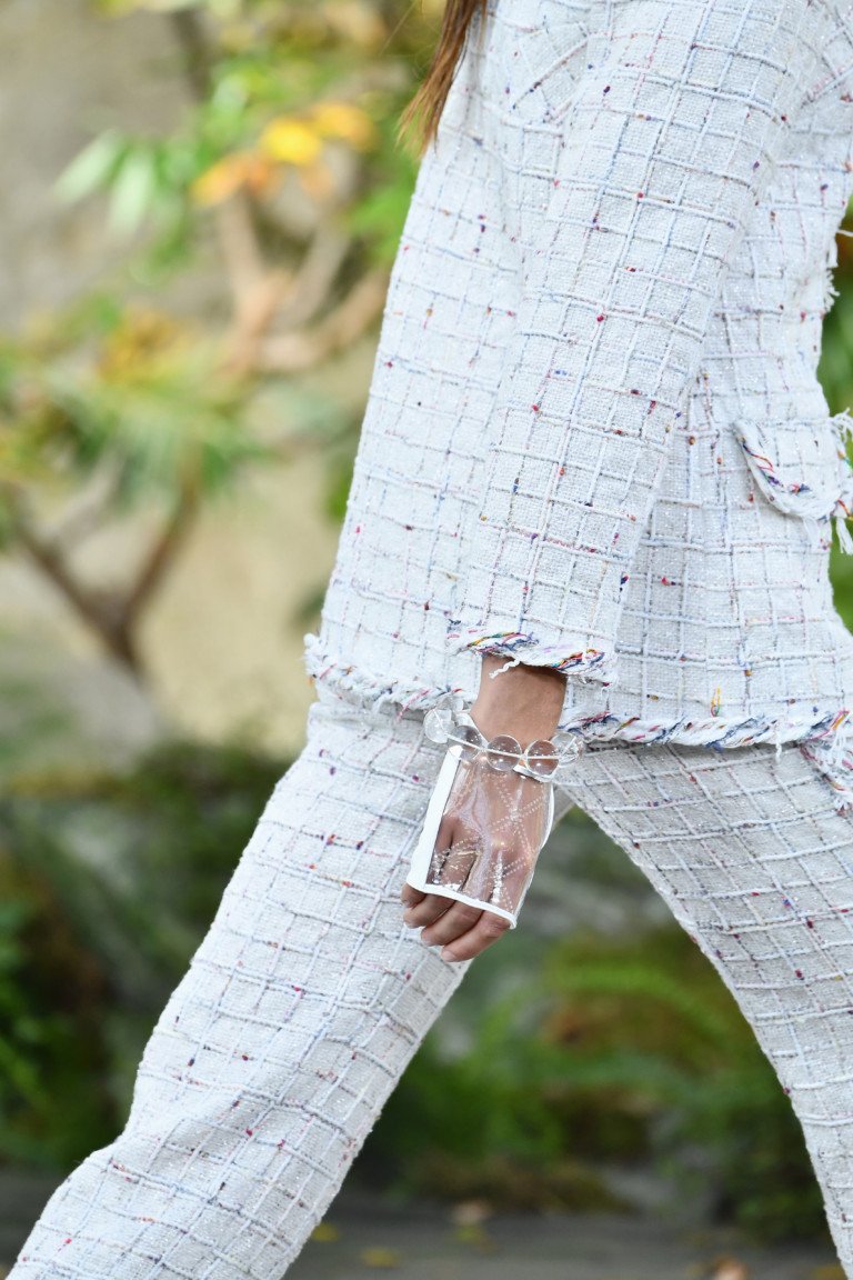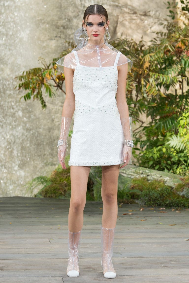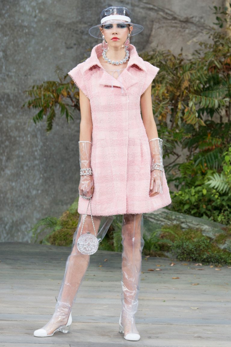 La nouvelle collection de vêtements Chanel se distingue par une caractéristique: elle a beaucoup d'amour et de romantisme. La salle comble et l'enthousiasme du public lors du défilé de la collection d'été Chanel-2018 ont confirmé que le monde entier continue d'admirer et d'aimer la légendaire Maison de Mode Chanel. Un chapeau transparent est devenu la décoration principale de la collection.Le style laconique d'un produit Chanel moderne se marie parfaitement avec un matériau transparent. Le style strict des vêtements est adouci par des chapeaux et des capuchons transparents, dans lesquels les femmes sont prêtes à conquérir de nouveaux sommets et coeurs d'hommes.